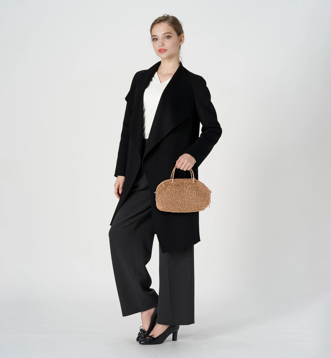 ワイヤーコードを使用したファスナーの引き手がデザインのアクセントとなり、シンプルでありながらもタイムレスな魅力を持つアイテムです。