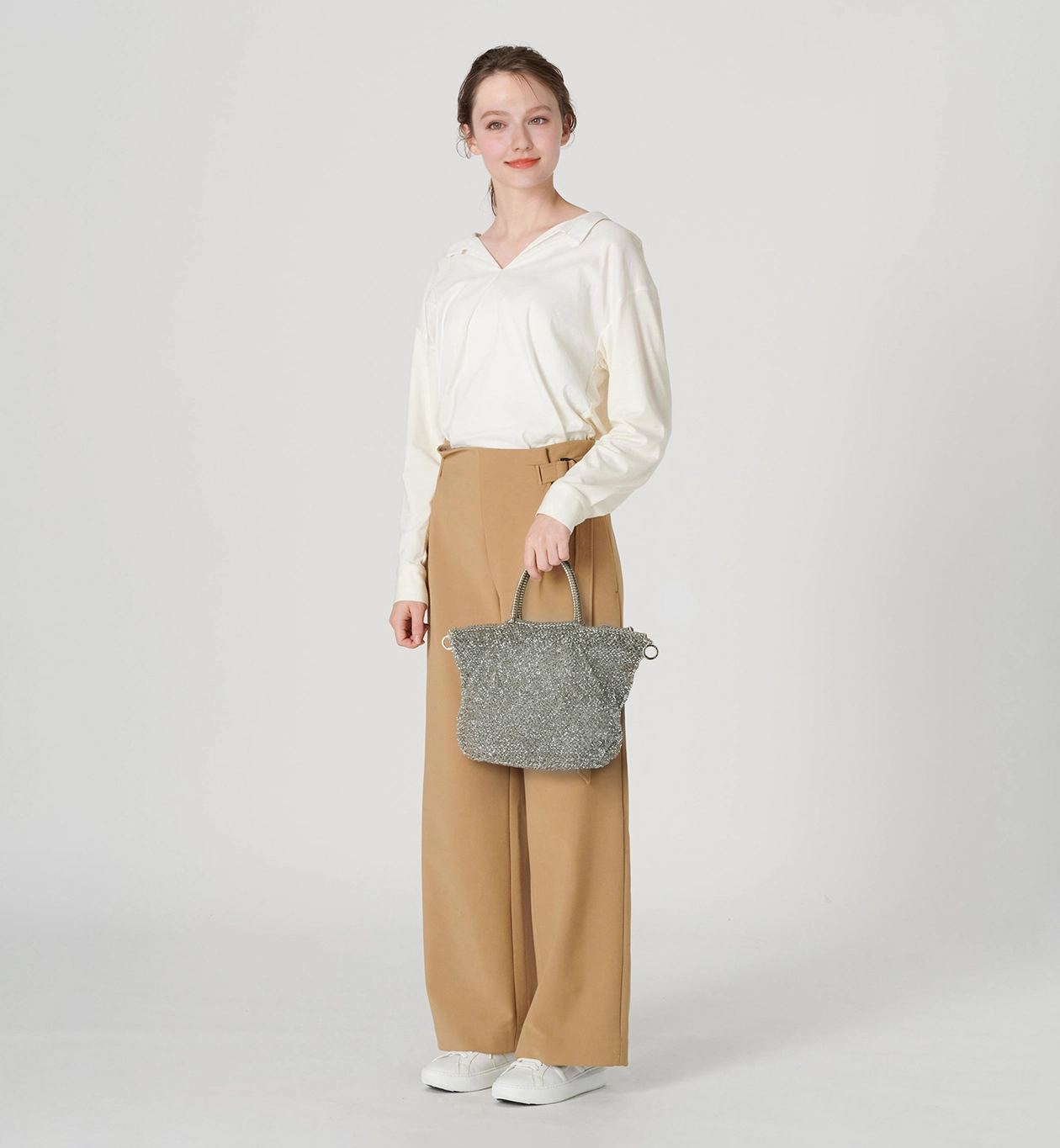 ワイヤーバッグならではのしなやかな伸縮で、お荷物の量や中身によってフレキシブルにフォルムが変化します。