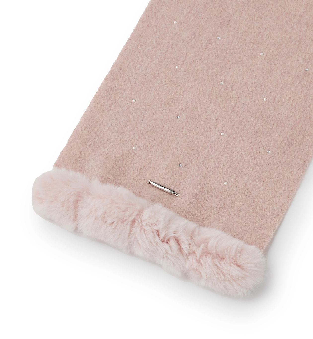 ラインストーン付きカシミヤウールプチマフラー/ピンク