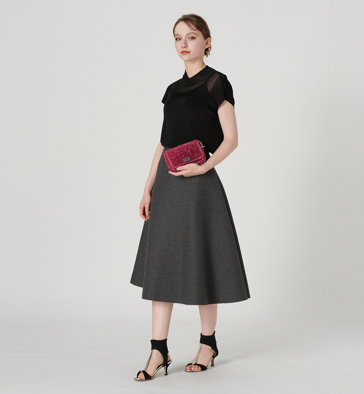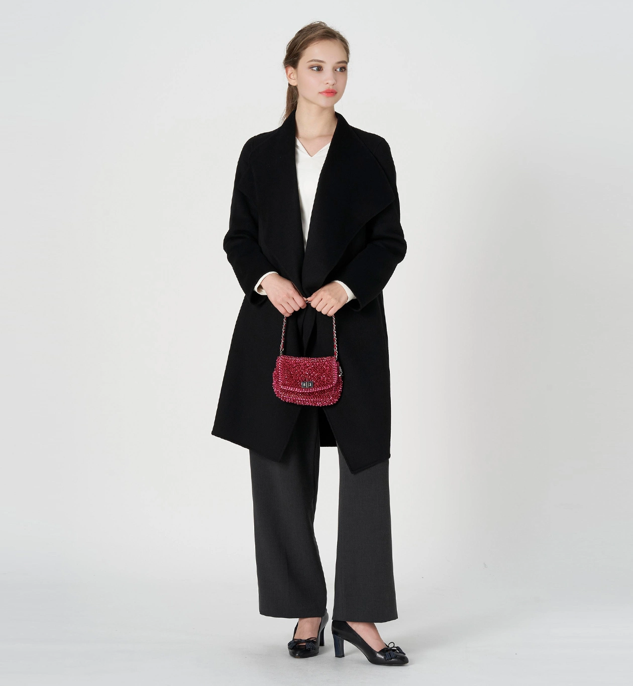 子育てしてるので、汚れが目立たない黒い服をよく着ています。なので、このフクシアピンクが差し色になってとっても良いです!キラキラしててテンション上がります!
