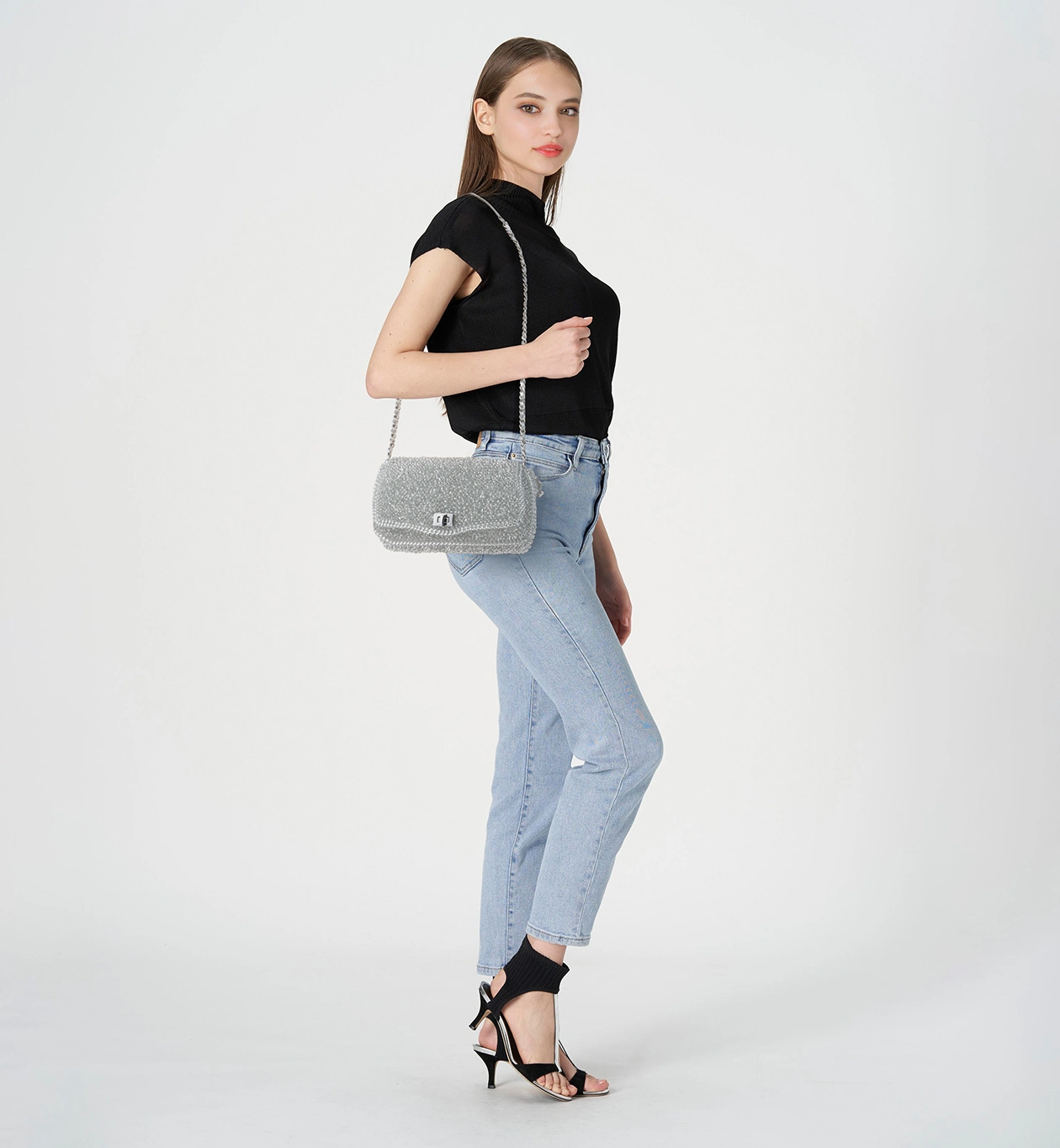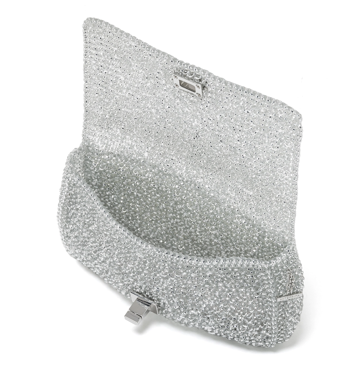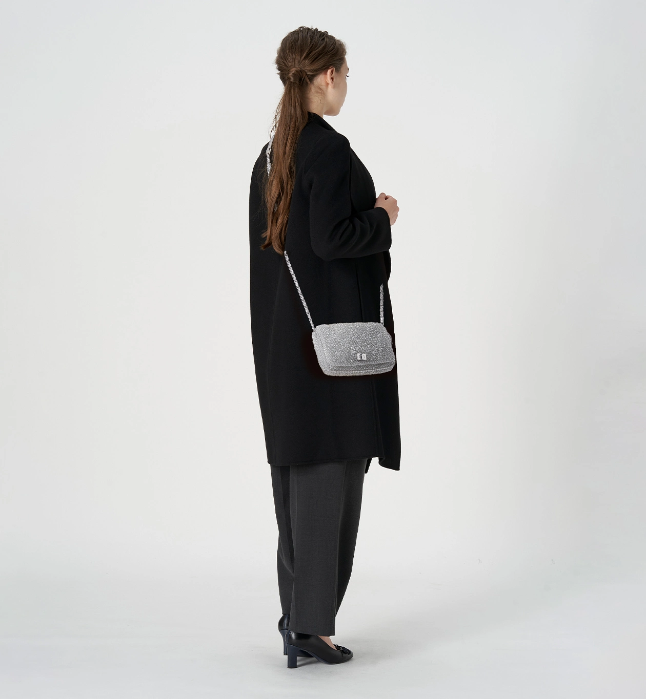 パールのついたペルラグリッターとかなり迷いましたが、店舗で実際に持ってみたところ、ペルラは重過ぎて断念。こちらは重さは気にならず、かつパールがなくても充分に華やかだったので購入しました。キラキラして可愛いのに少しかっちりした形が大人っぽくもあり、甘辛でとても素敵。