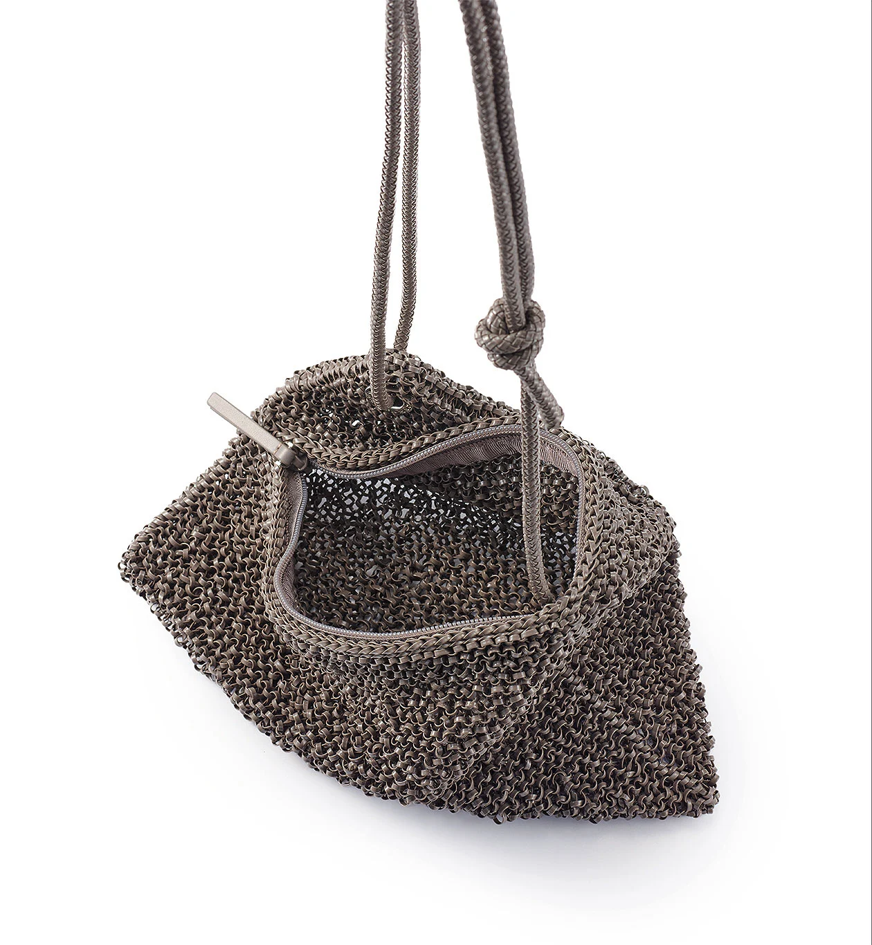 マチなしのタイトなショルダーバッグは、ワイヤーコードならではのしなやかな伸縮で、お荷物の量や中身によってフレキシブルにフォルムが変化します。