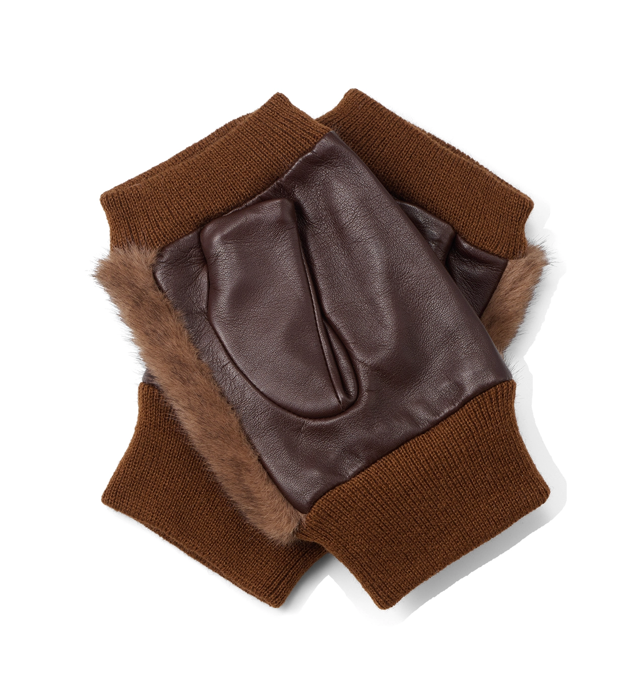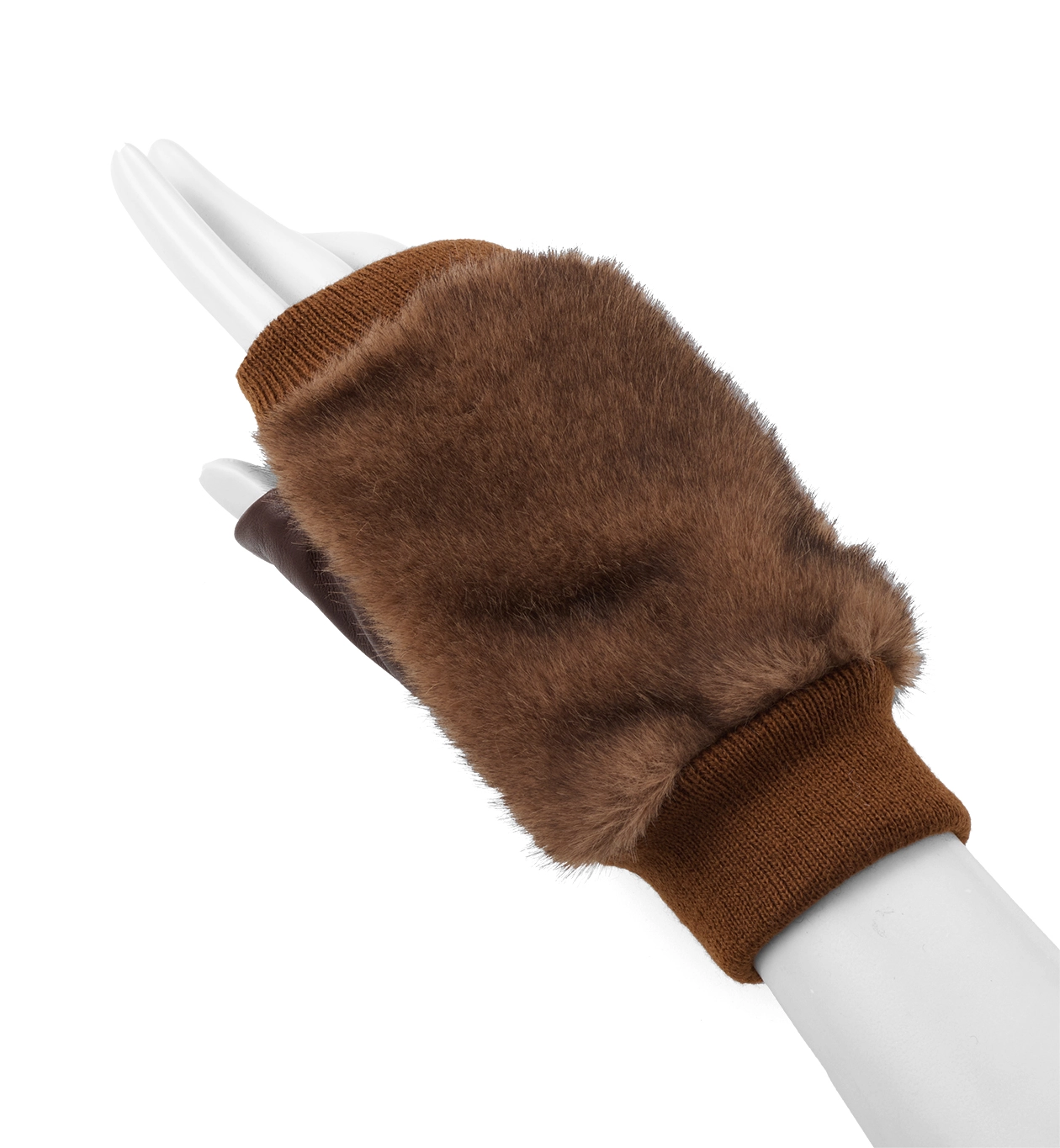 FINGERLESS FAKE FUR GLOVES/DARK BROWN EAP512751-E28-000