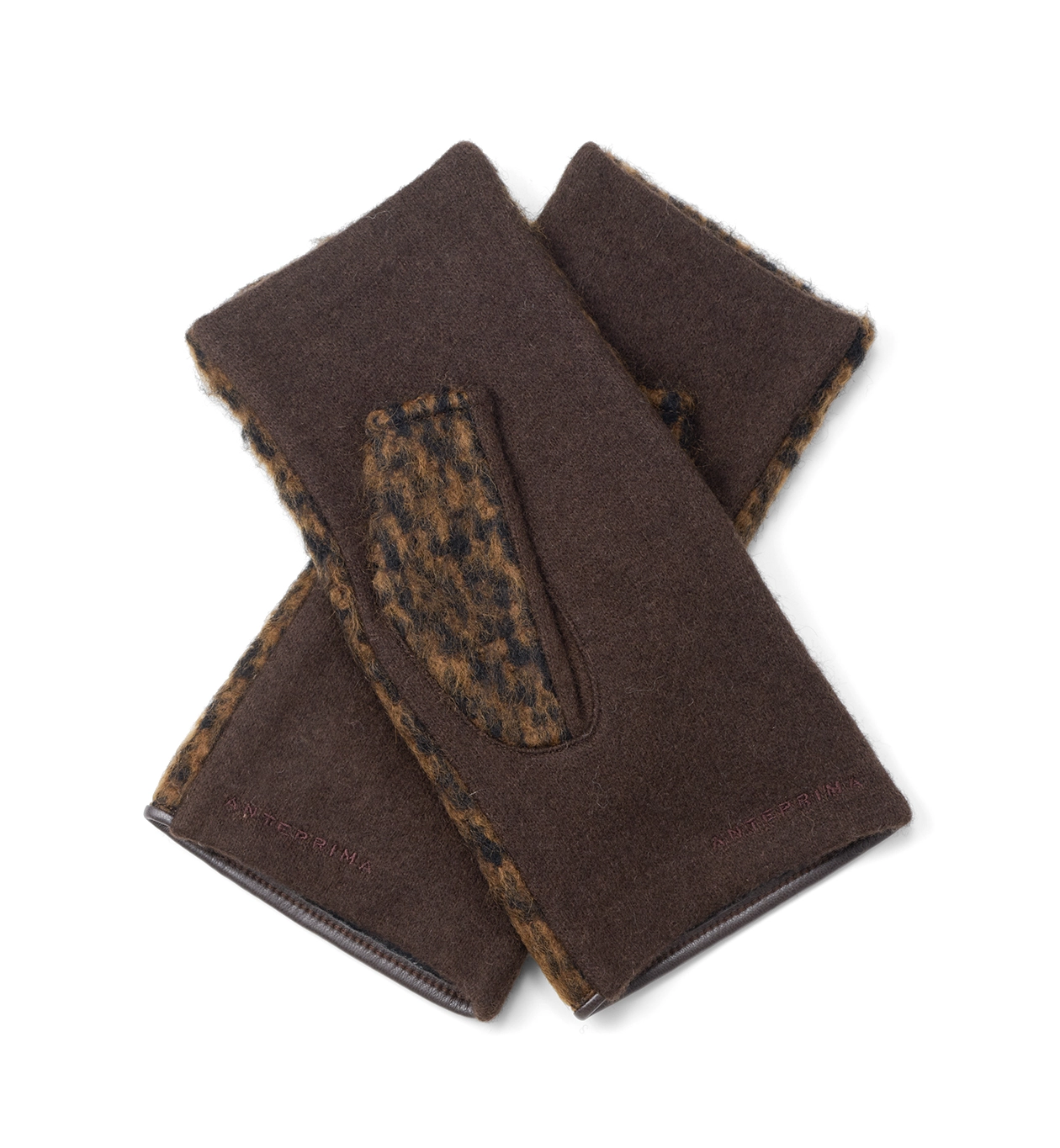 フィオーリ付きフィンガーレスツイードジャージグローブ/ダークブラウン