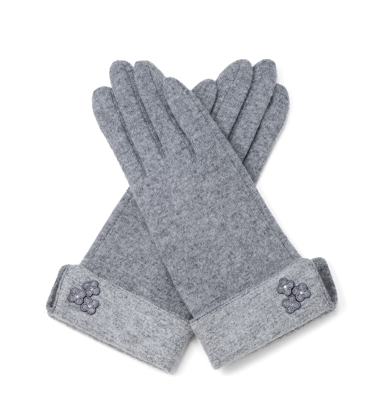ツイードカフス折り返し指先スリットジャージグローブ/グレー