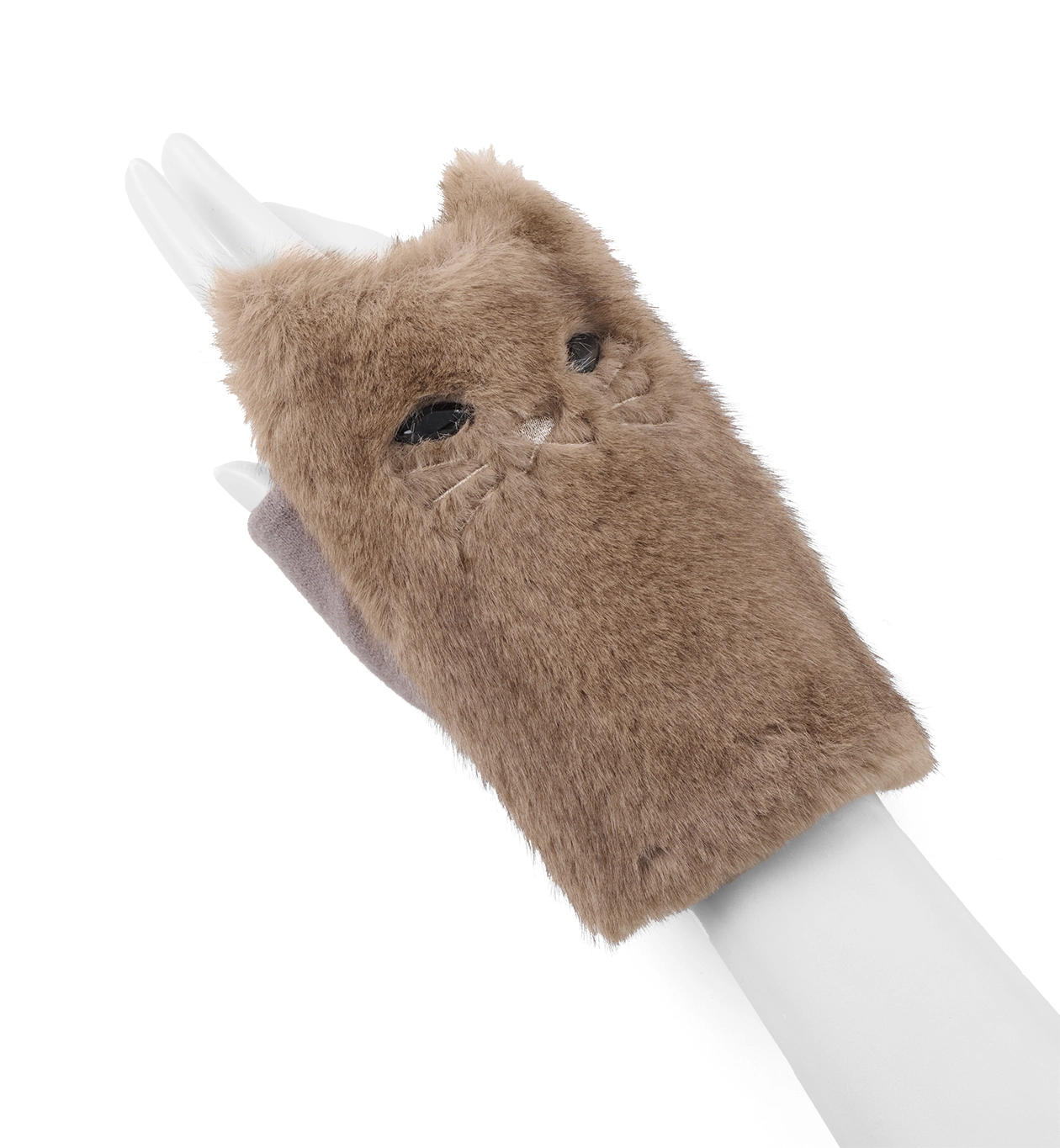 キャットモチーフフィンガーレスグローブ/グレージュ