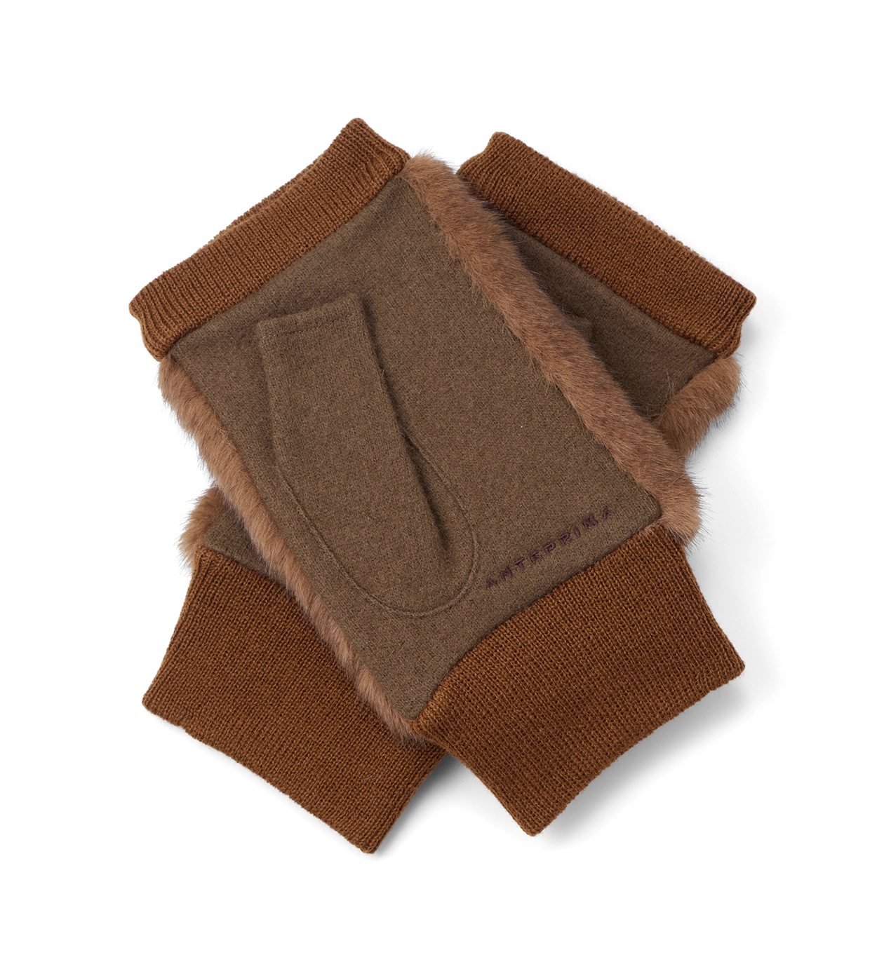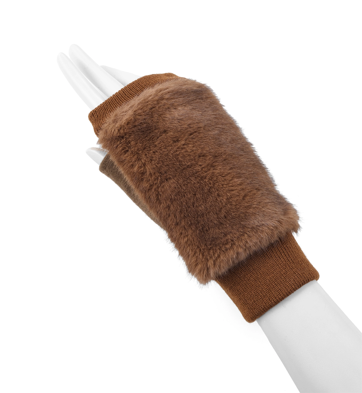 FINGERLESS FAKE FUR JERSEY GLOVES/BROWN EAP513501-A09-000