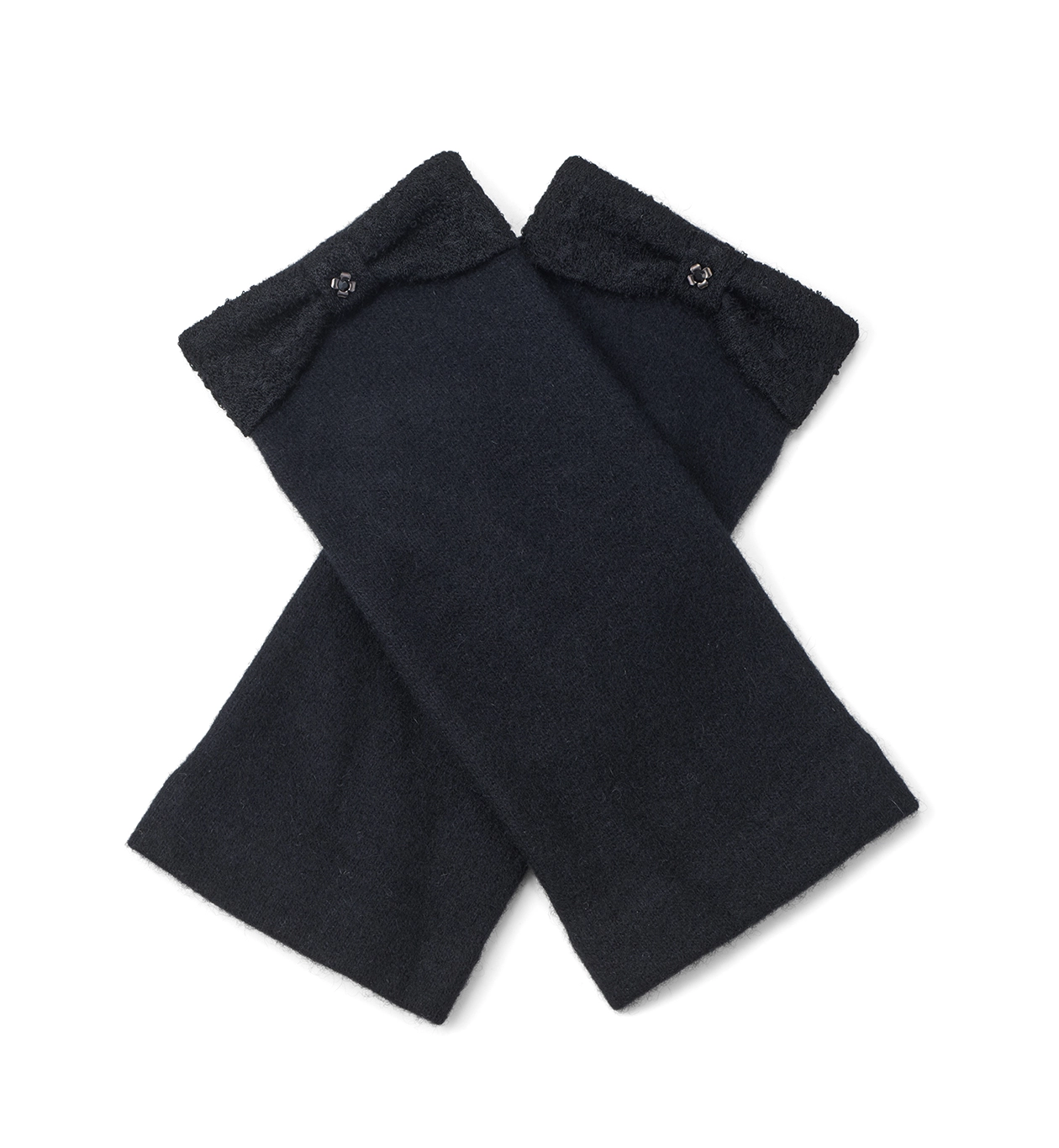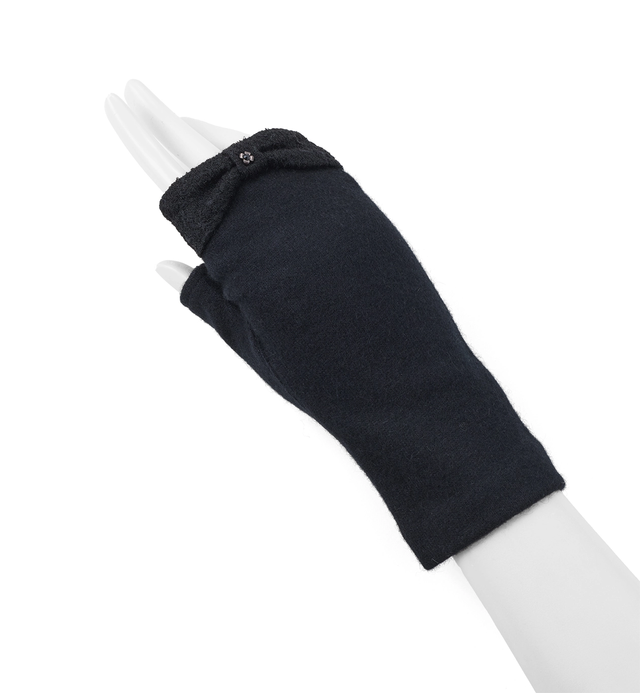 フィンガーレスリボンモチーフ付きジャージグローブ/ブラック