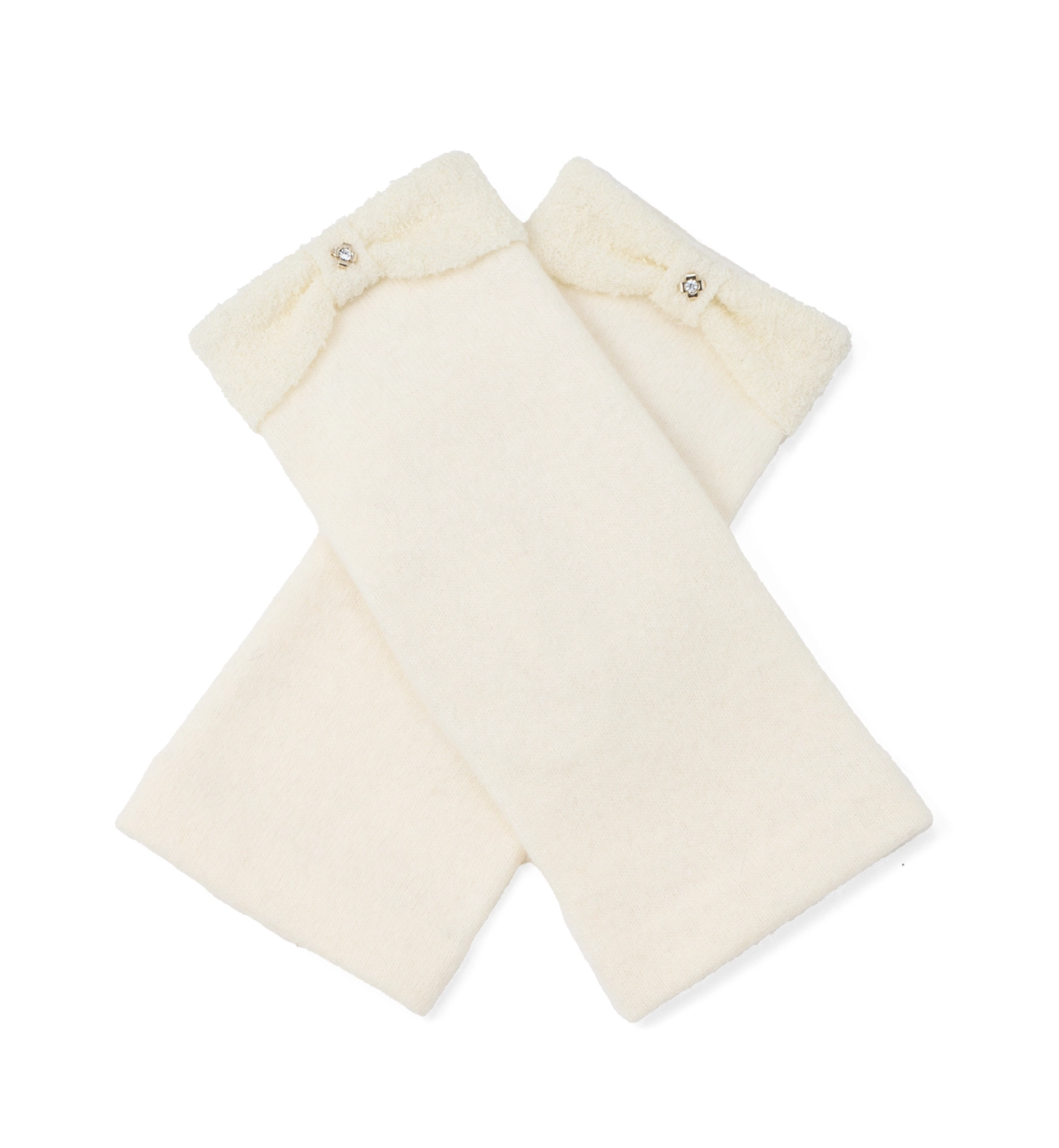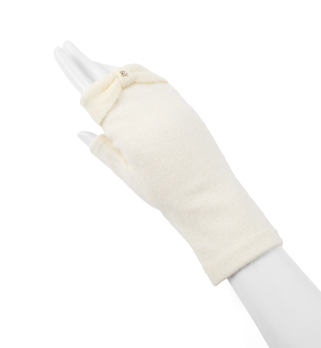フィンガーレスリボンモチーフ付きジャージグローブ/オフホワイト