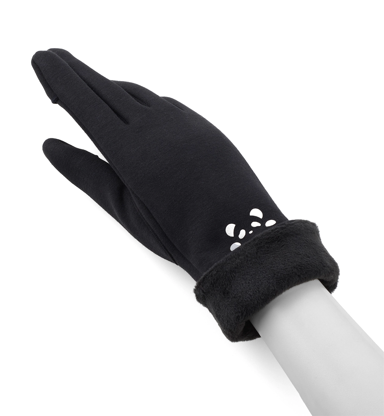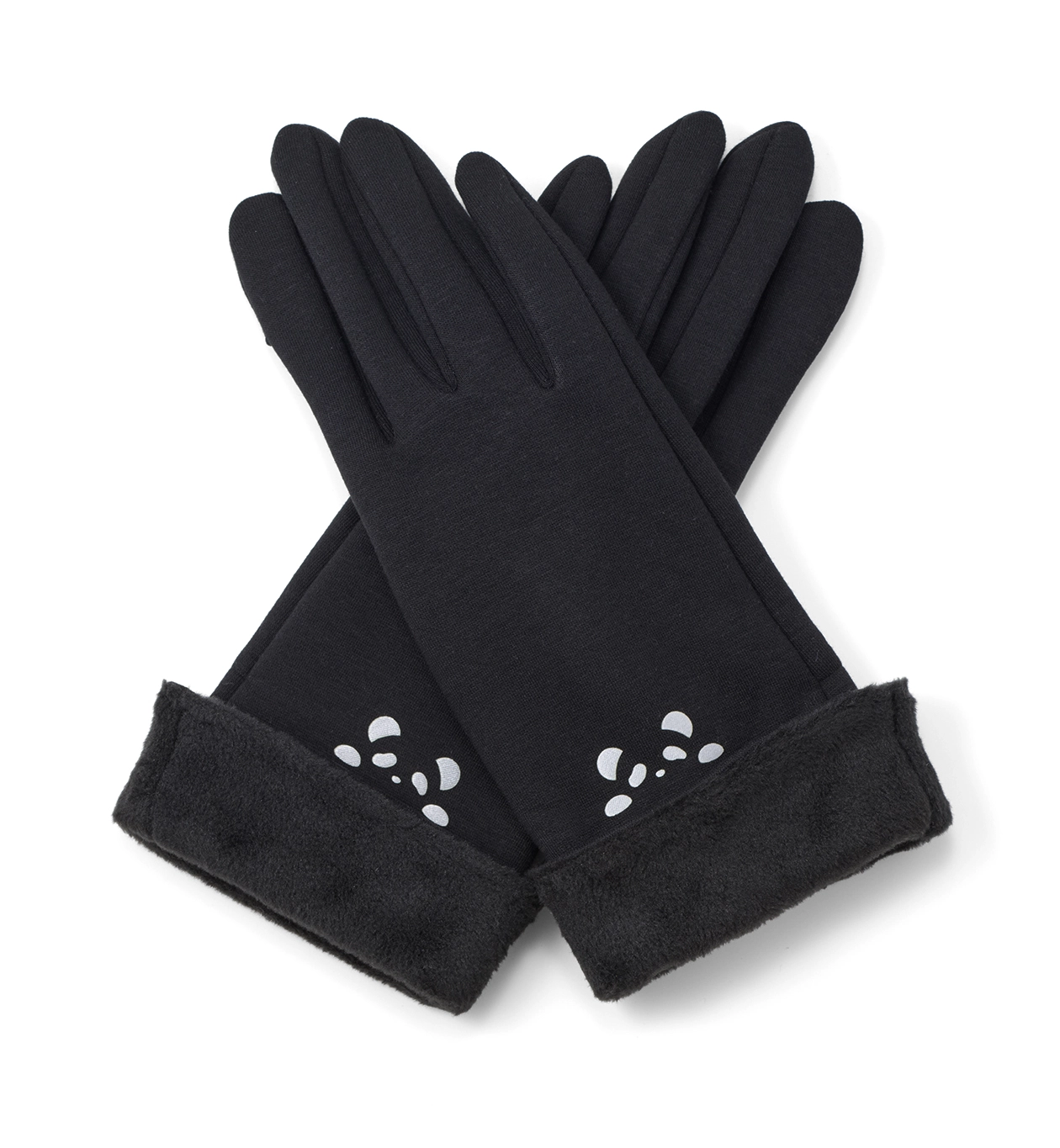 パンダモチーフ付き指先スリットジャージグローブ/ブラック