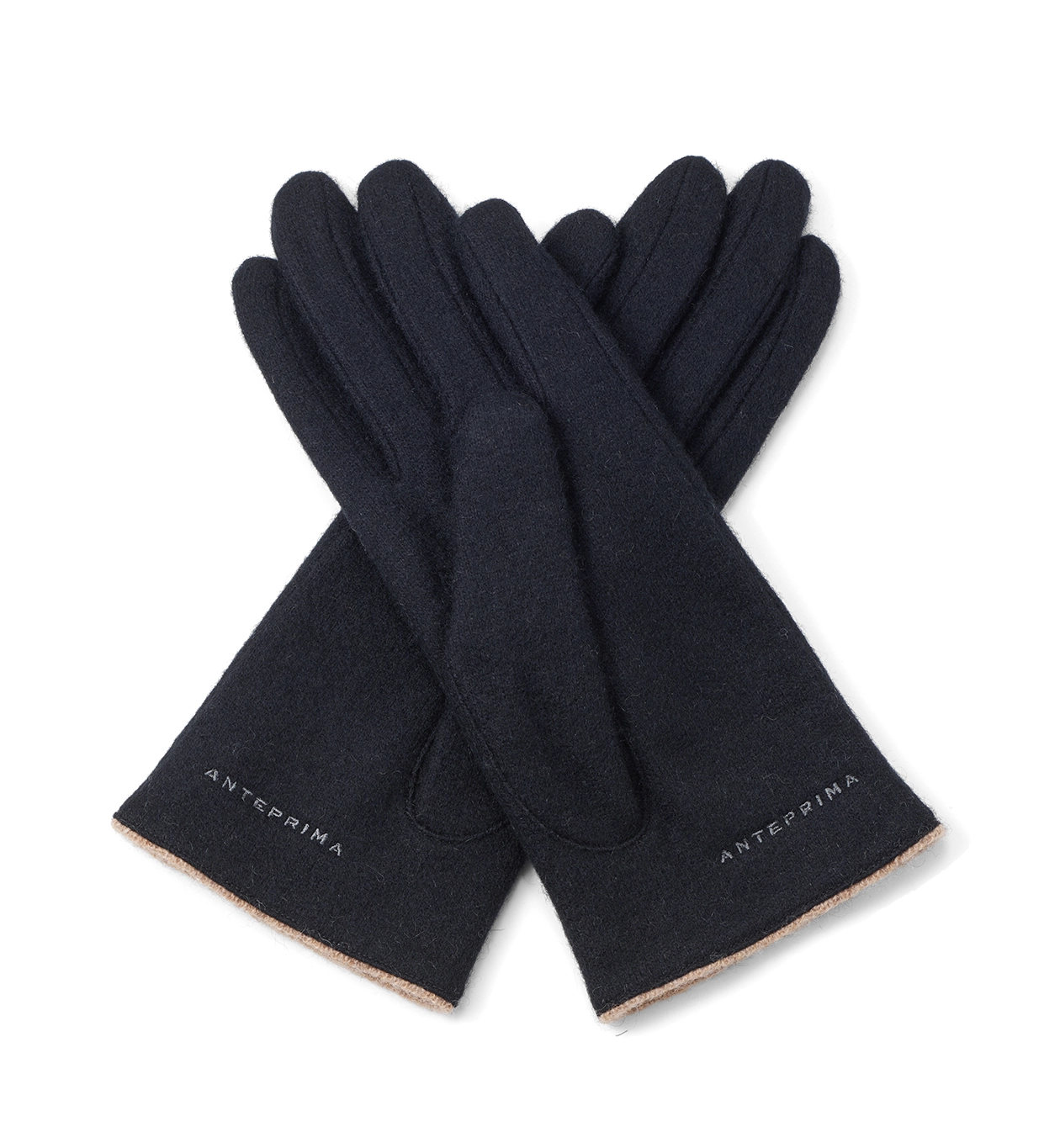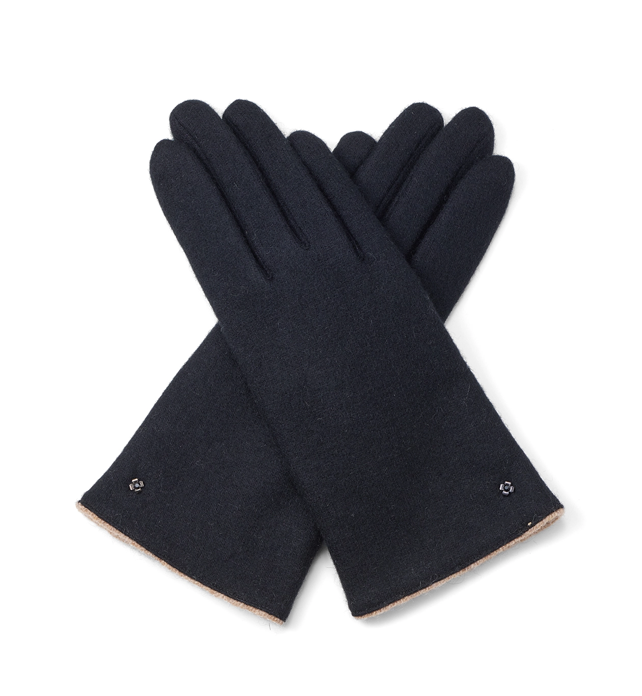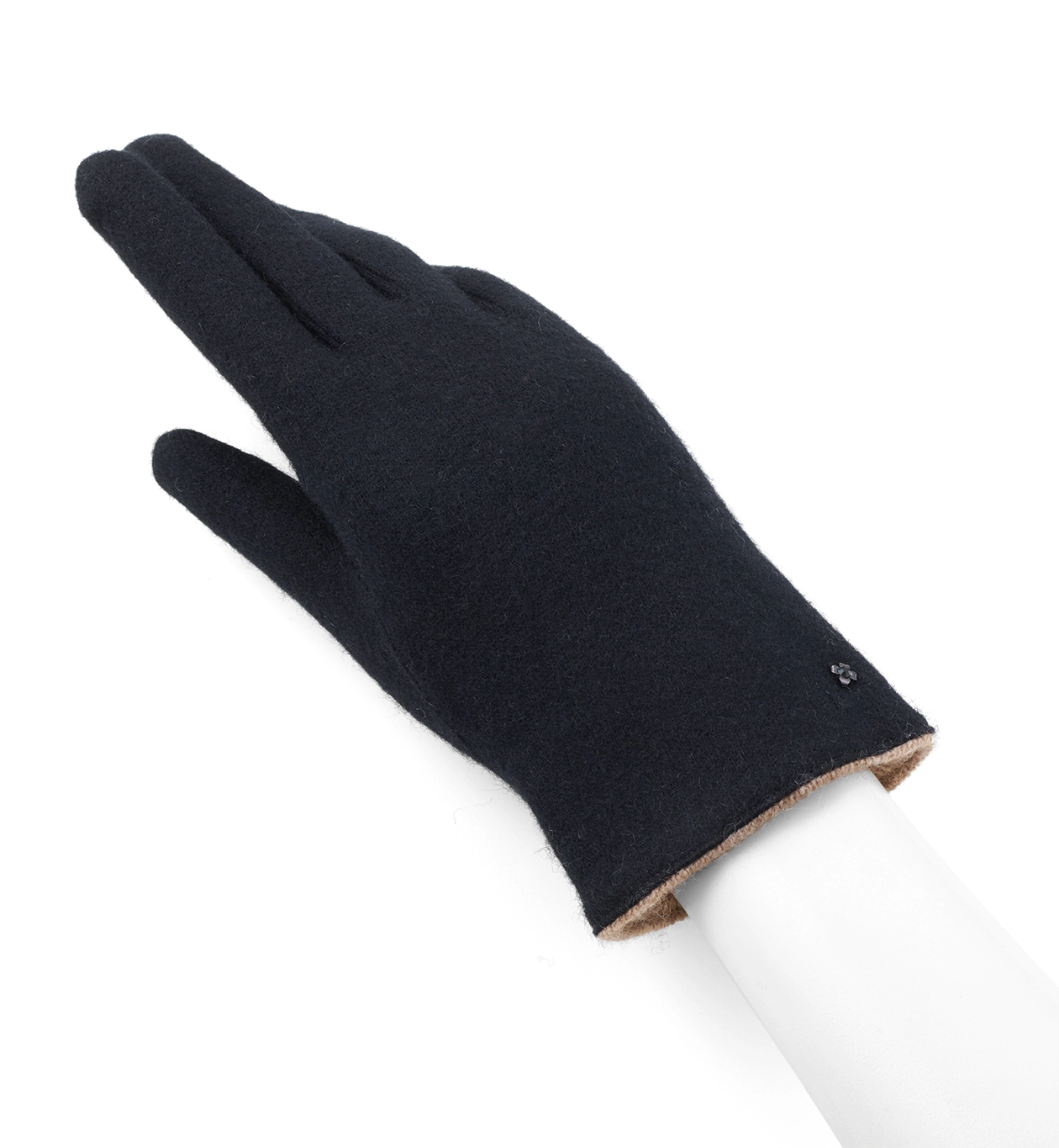 ジャージ素材にカシミヤ混のニット裏地を使用した、あたたかな着け心地の手袋。