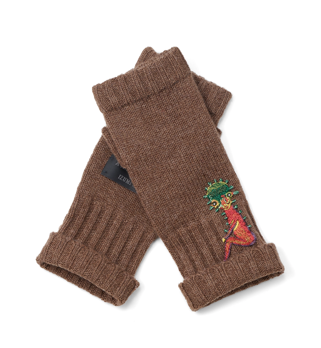 • イズミ カトウフィンガーレスニットグローブ/ブラウン