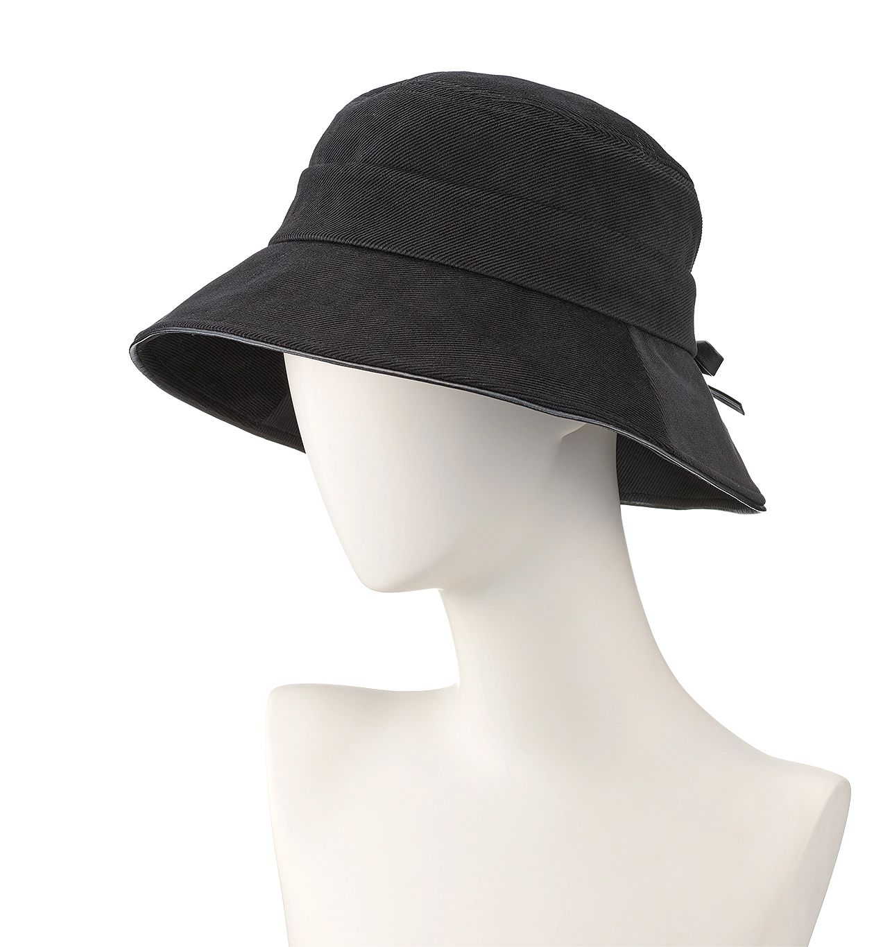 柔らかなベロア調素材とつば先のレザーアクセントが上品なクロッシェハット。