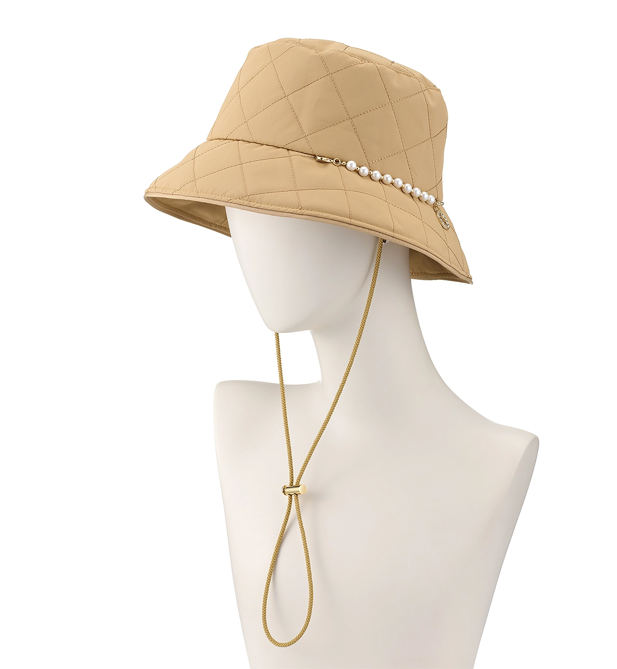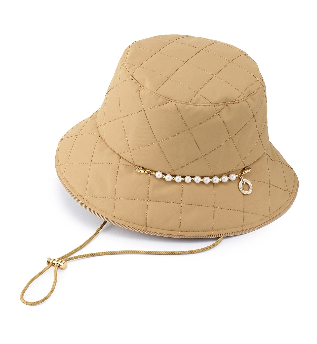 PEARL CHAIN QUILTED BUCKET HAT/BEIGE E4AN144900-004-000