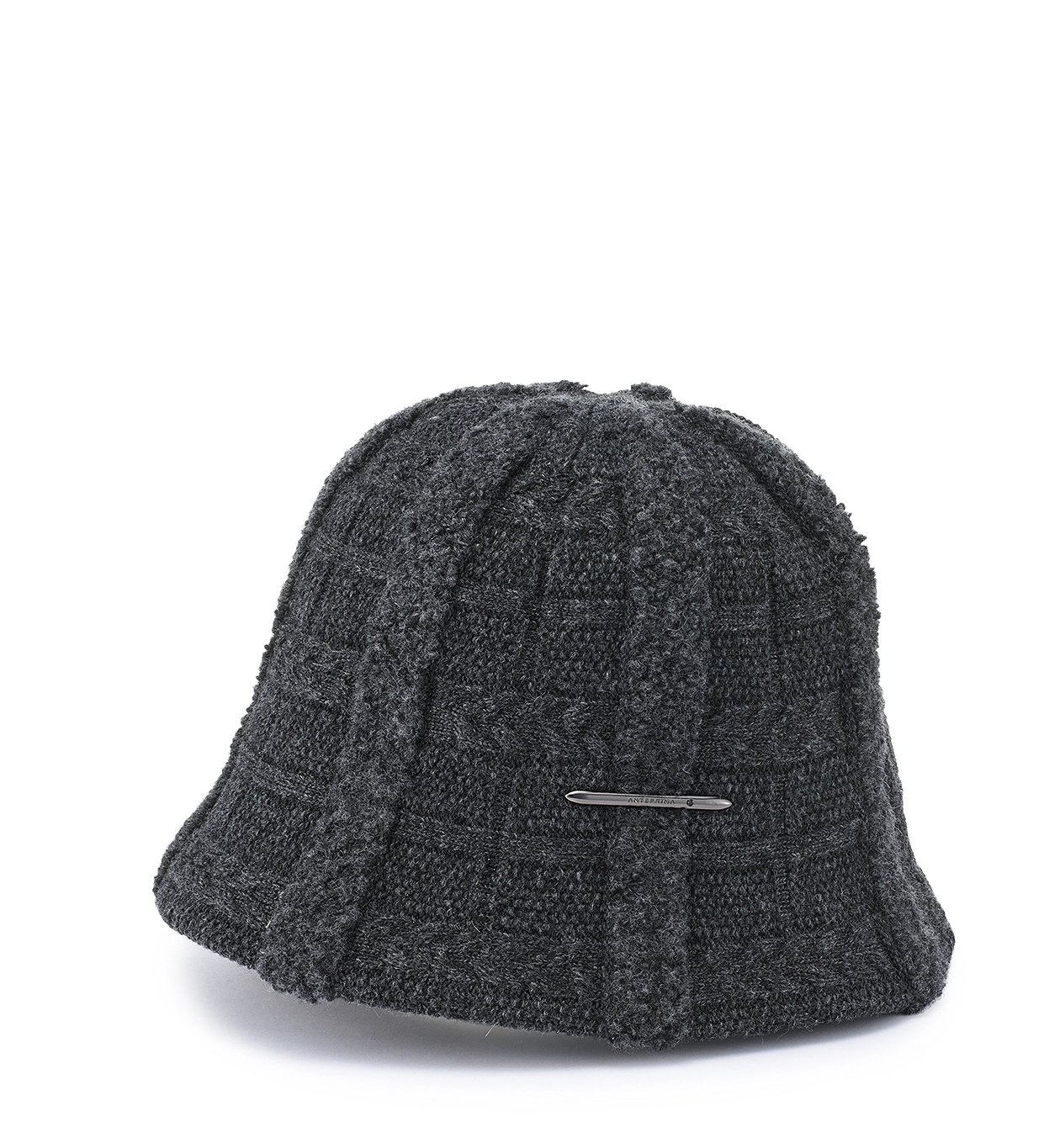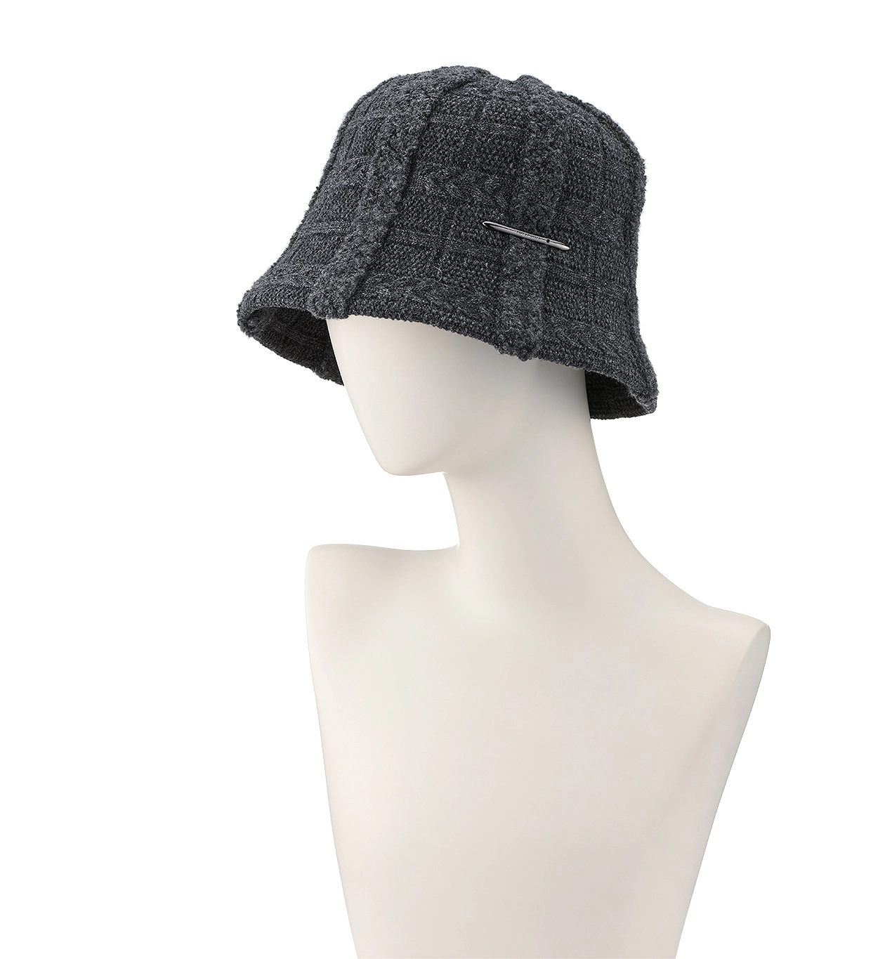 PLAID KNIT THERMO CROCHET HAT/BLACK E4AN344940-E22-000