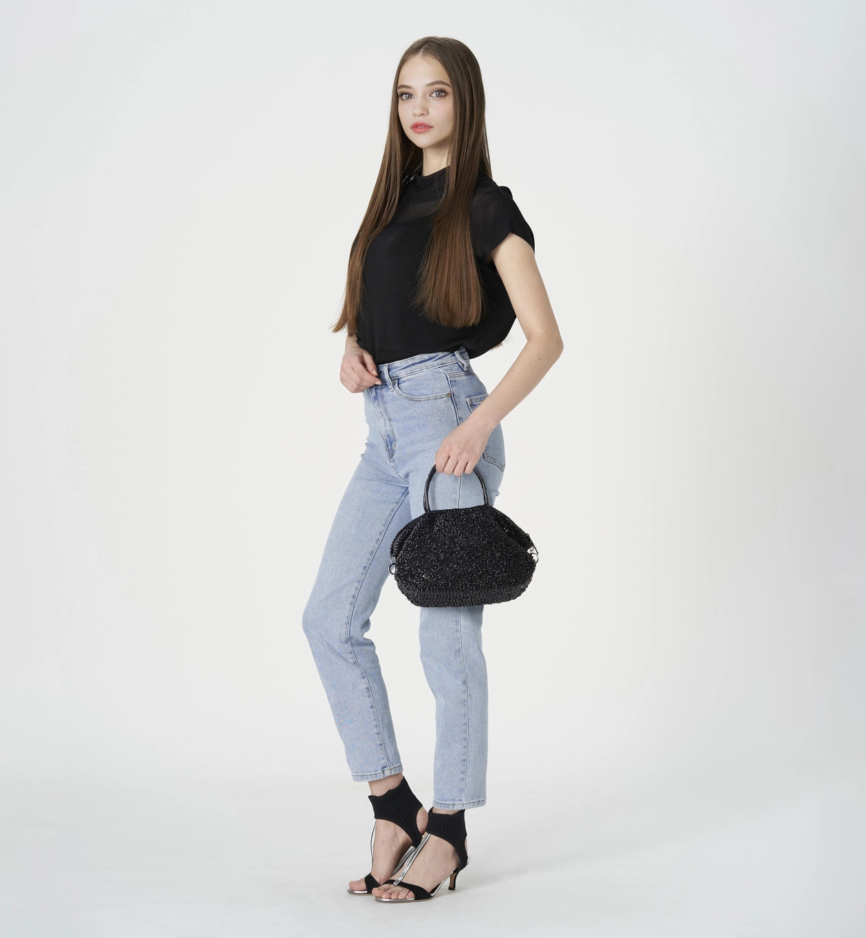 ワイヤーバッグならではのしなやかな伸縮で、お荷物の量や中身によってフレキシブルにフォルムが変化します。