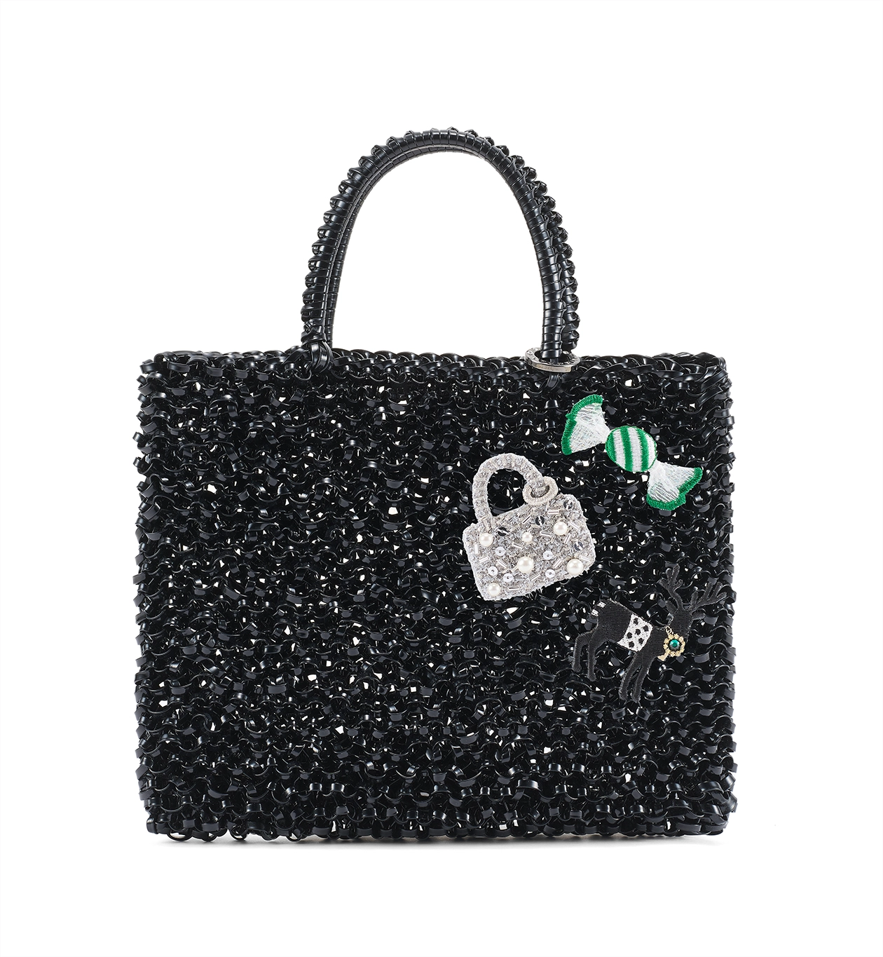 | 素材 | バッグ:ポリエステル糸、レーヨン糸、ガラスビーズ、スパンコール、樹脂パール キャンディ:ポリエステル糸、レーヨン糸、キュプラ糸、ポリエチレン トナカイ: ポリエステル糸、レーヨン糸、ガラスラインストーン メタルピン(共通):真鍮 |