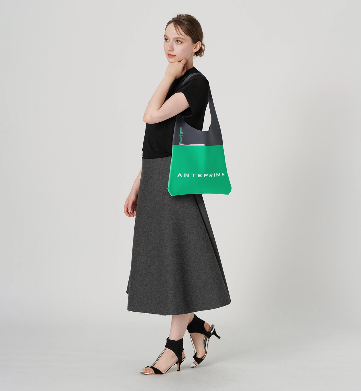 印象的なバイカラーデザインが、スタイリングのアクセントとして存在感を放ちます。