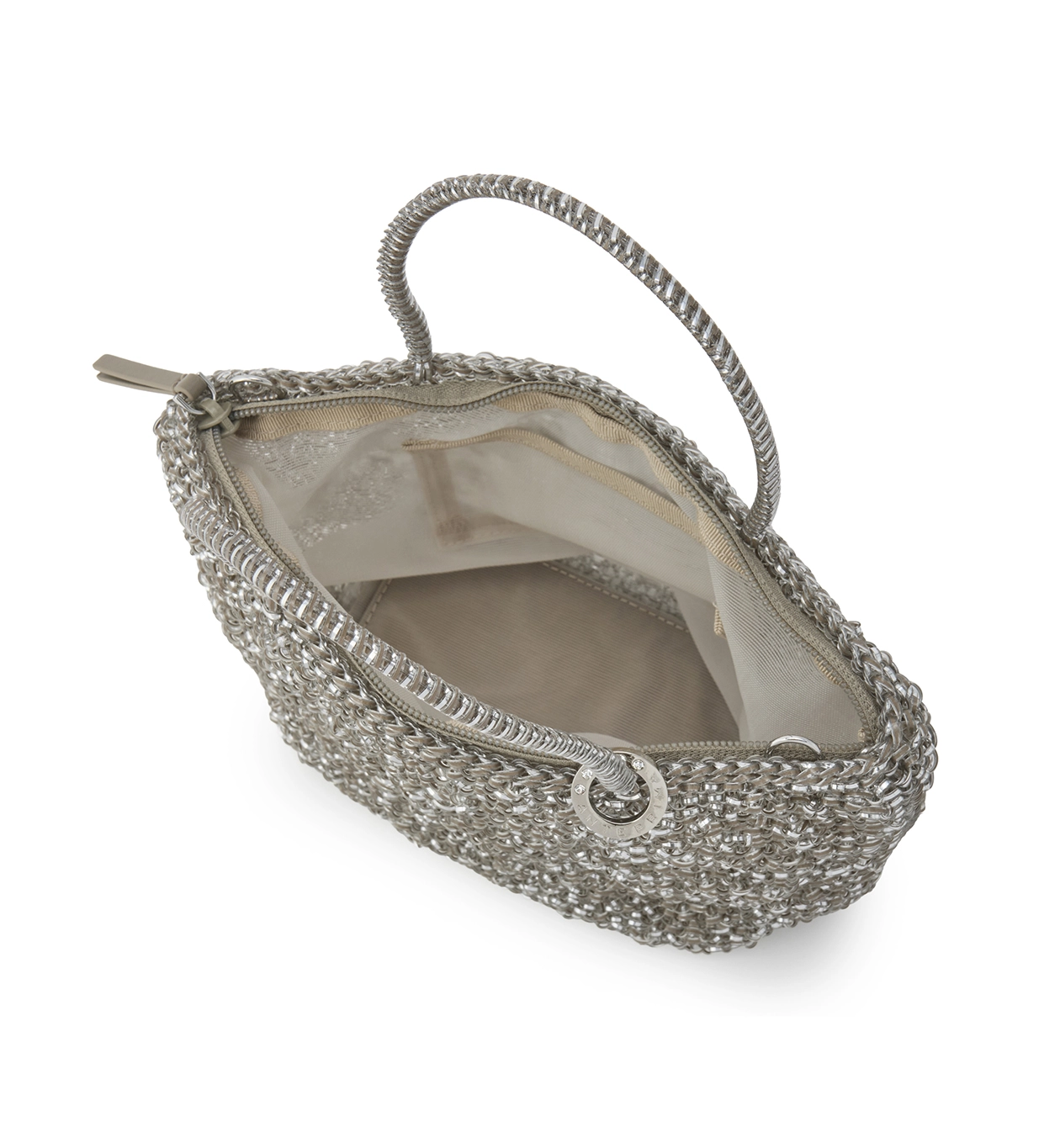 間口はファスナー仕様で中身が見えにくく安心。内側には伸びにくいメッシュ素材の裏地を採用しています。
