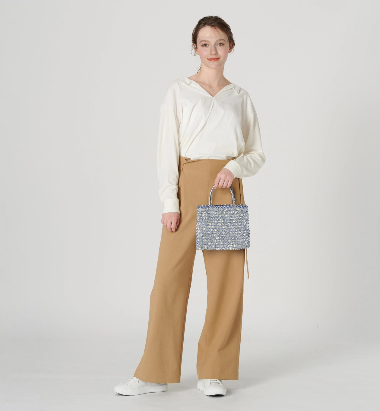 二つ折り財布・スマートフォン・ポーチなどお出かけの必需品が収まる、デイリーユースにぴったりのサイズ感です。