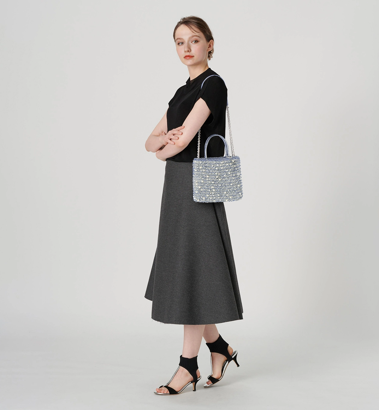 スパンコールにビーズ、そしてワイヤーコードと、異なる輝きがひとつで楽しめます。