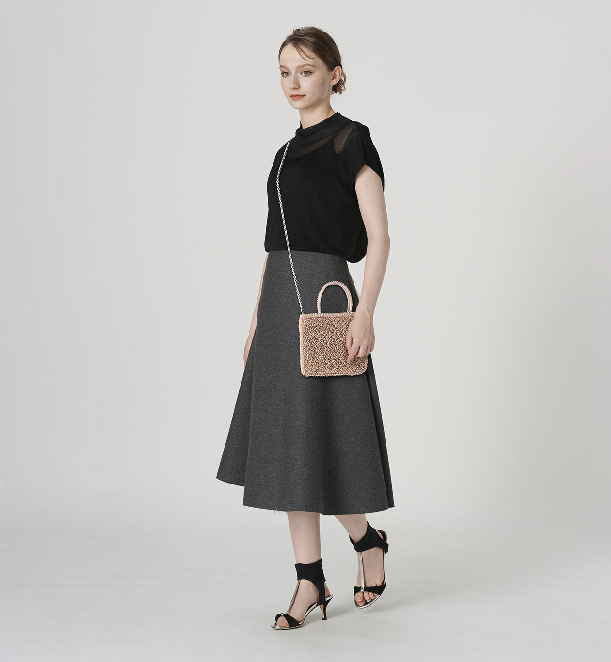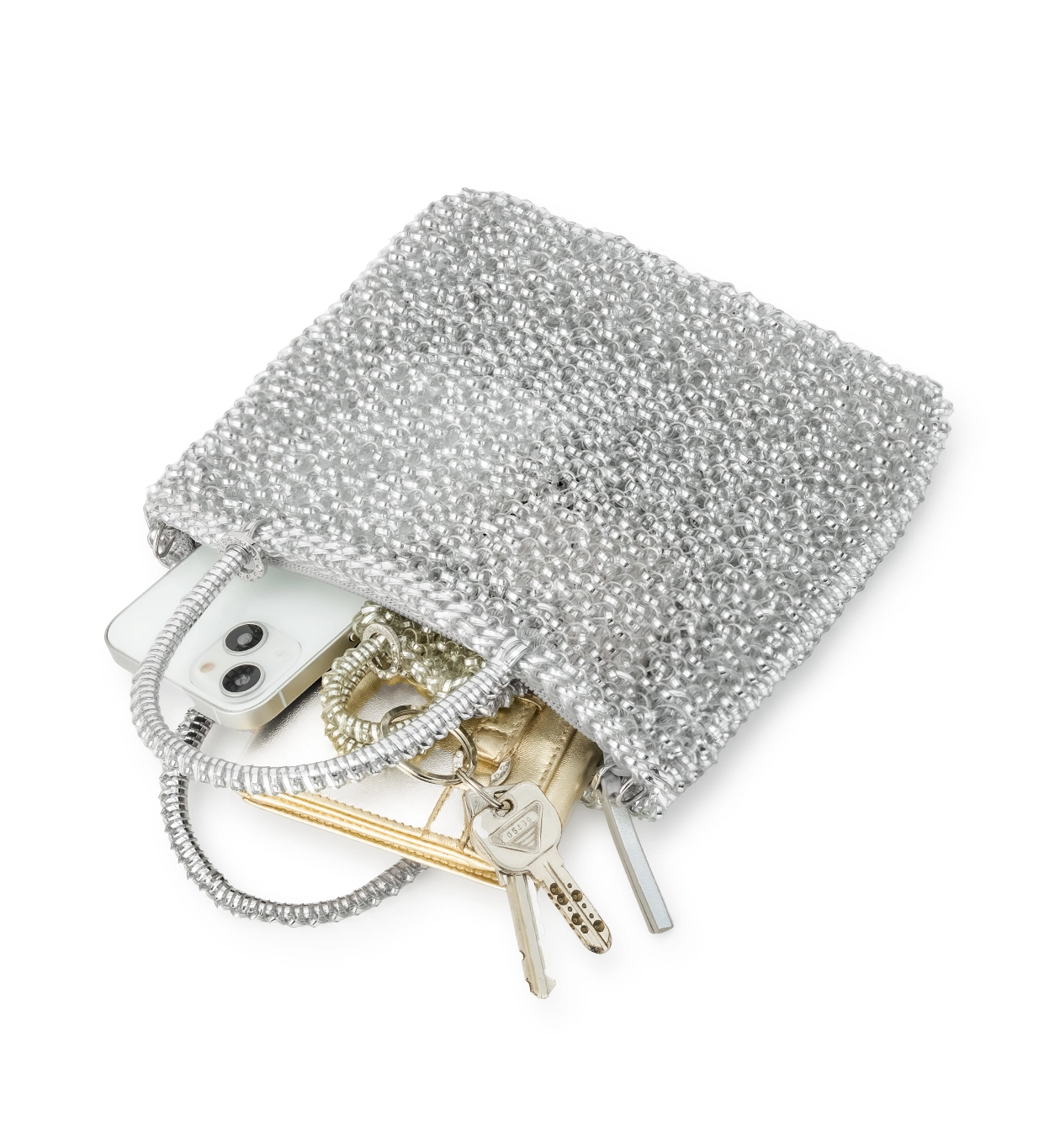 ワイヤーコードならではの適度な伸縮があるので、二つ折り財布・スマートフォン・コンパクトなどの必需品がぴったり収まるサイズ。