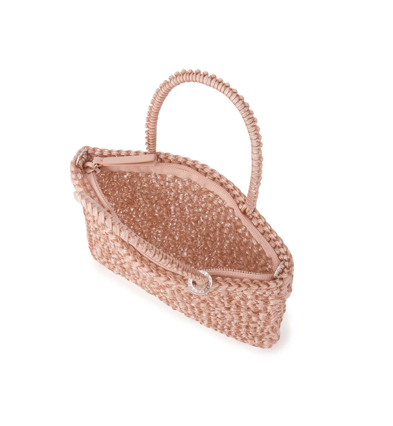 柔らかなサーモンピンクのワイヤーコードの端(BORDO)にARGENTOを配したサーモンピンク アルボルド。