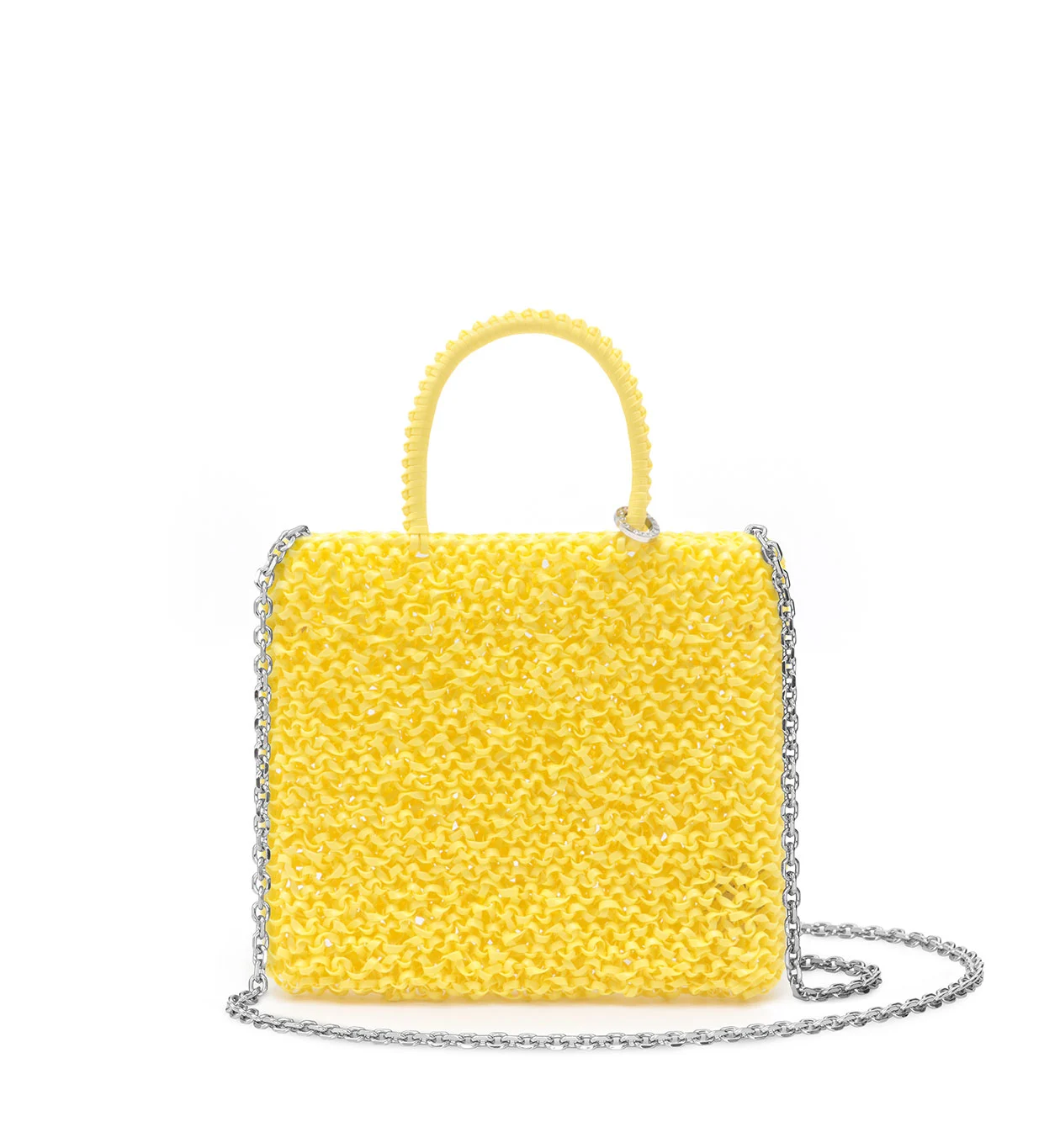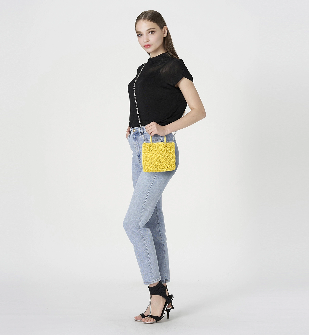 エクスクルーシヴな素材を使い、ひとつひとつを手編みで仕立てたワイヤーバッグ。