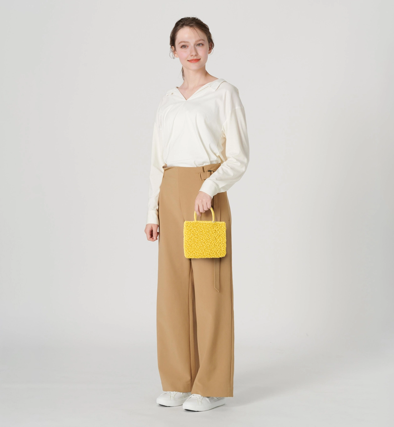 ワイヤーコードならではの適度な伸縮があるので、二つ折り財布・スマートフォン・リップスティックなどの必需品がぴったり収まるサイズです。