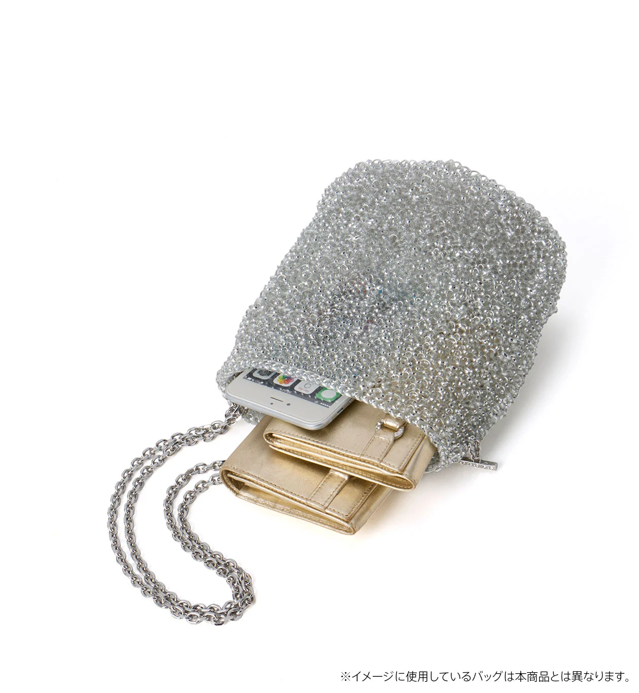 取り外しのできる付属のチェーンはアレンジができ、ショルダー、斜めがけの2WAYでお使いいただけます。
