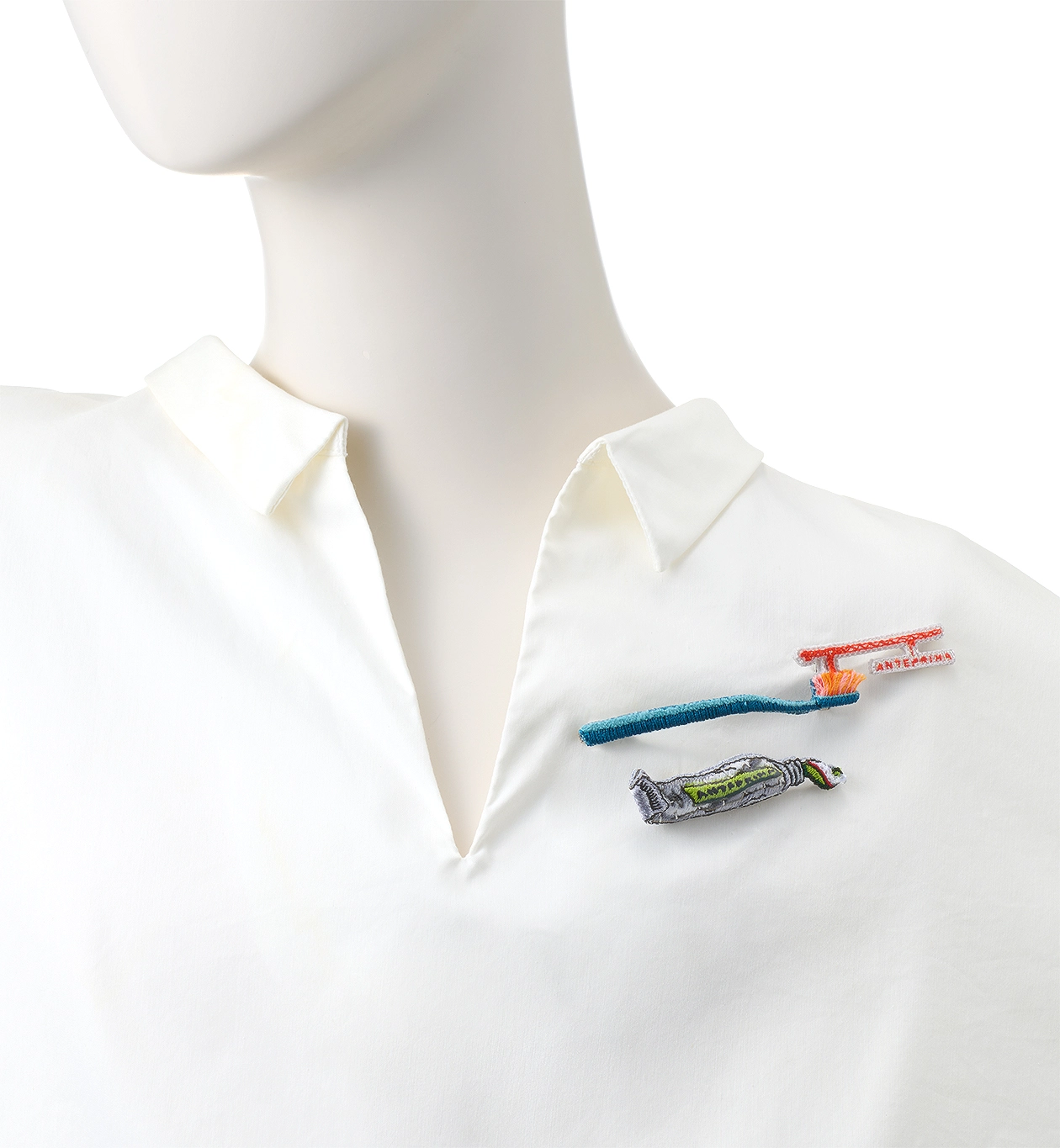 歯ブラシと歯磨き粉をモチーフにしたブローチは、お洋服や帽子、ストールなど幅広いアイテムのアクセントとしてお楽しみいただけます。