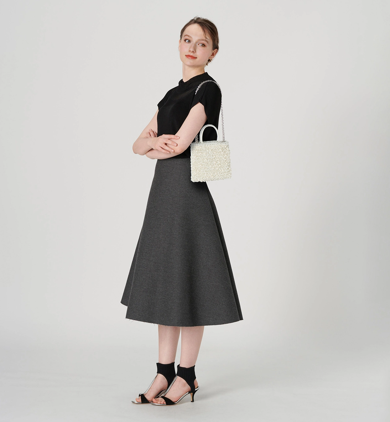スパンコールにビーズ、そしてワイヤーコードと、異なる輝きがひとつで楽しめます。