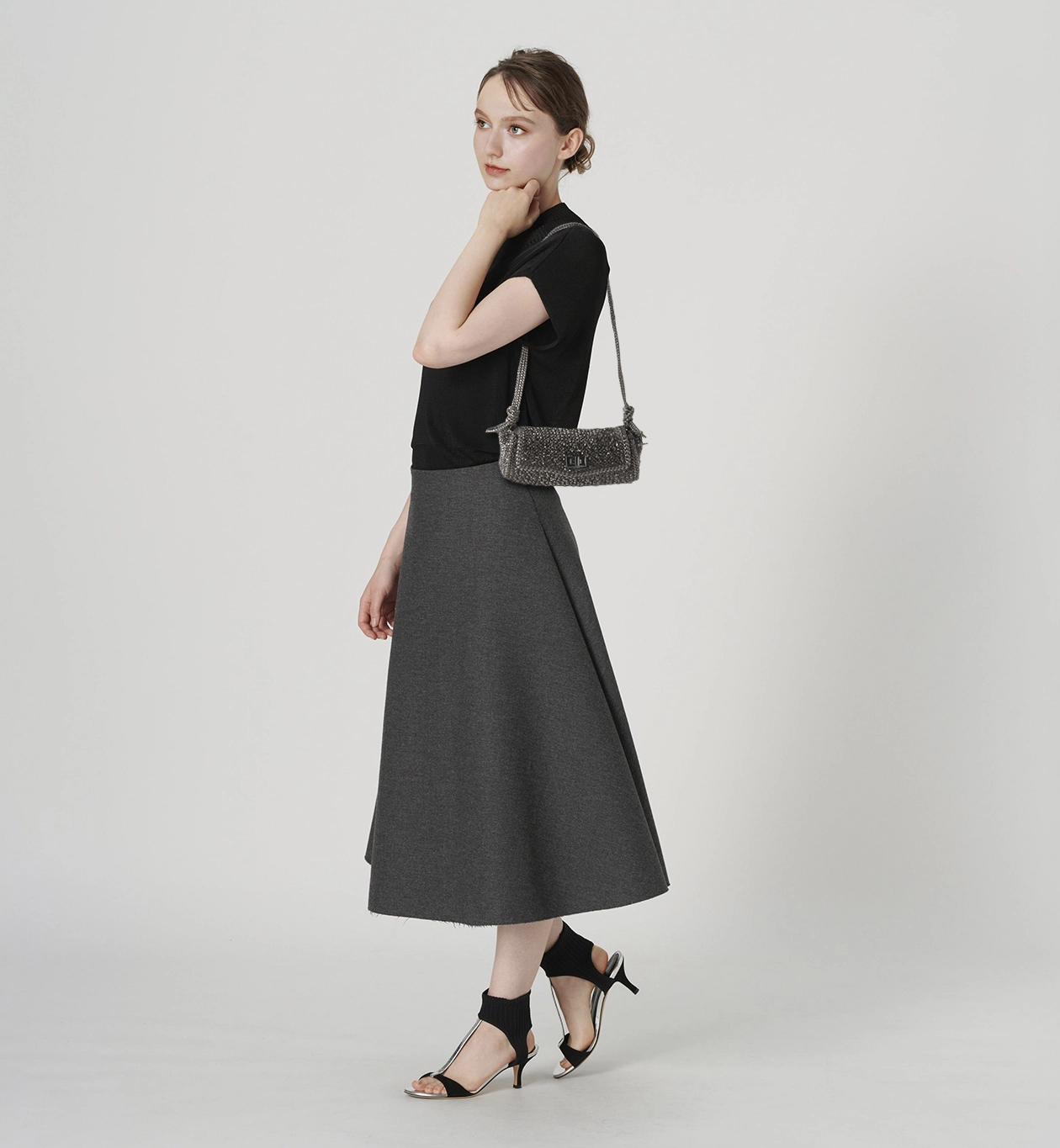 フラップが加わることで、モードな雰囲気の中にクラシックな要素も漂い、上品さのある表情に仕上がっています。