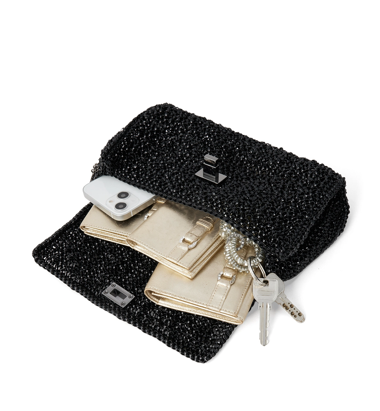 ミディアムはコンパクトなサイズながら、ワイヤーコードならではの適度な伸縮とマチがあることで、必需品+αの収納が可能です。