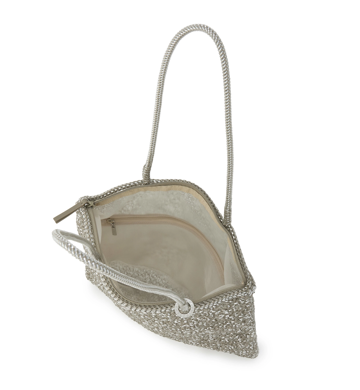 内側にはバッグの中身が透けにくいメッシュ素材の裏地を採用。ファスナー付きを含む3つのポケットで、小物の整理に便利です。