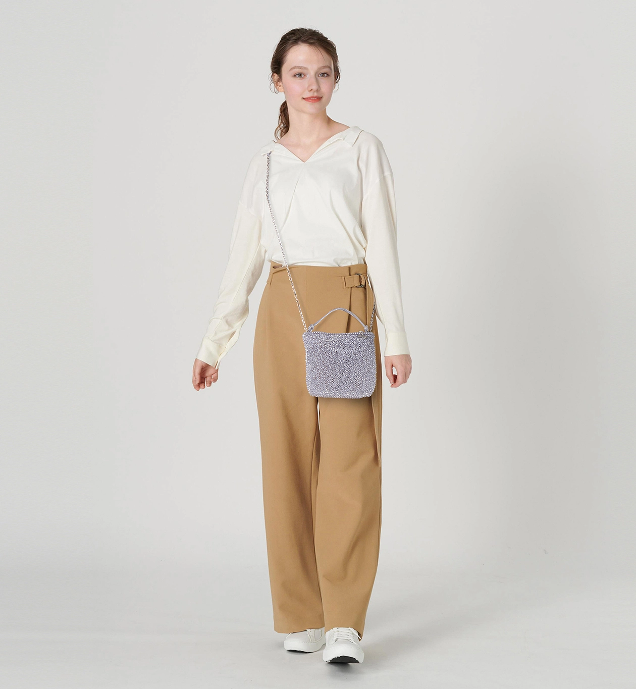 荷物を入れることで自然な立体感が生まれ、独特のフォルムが引き立ちます。