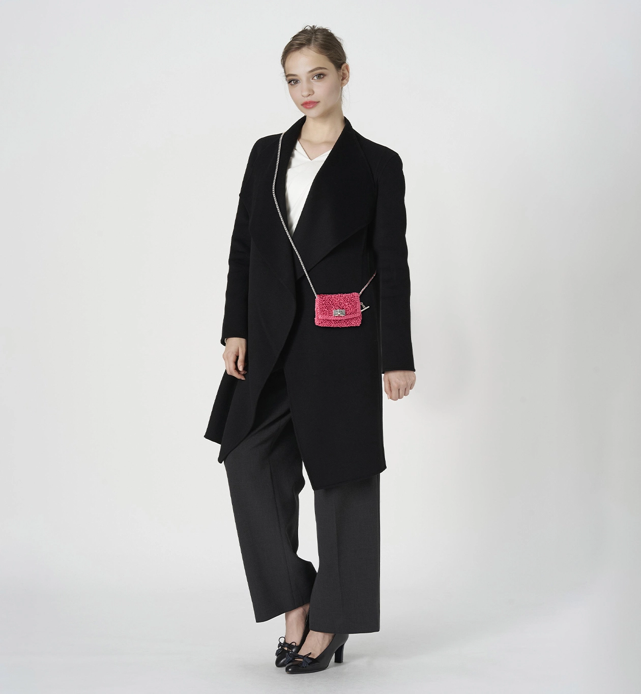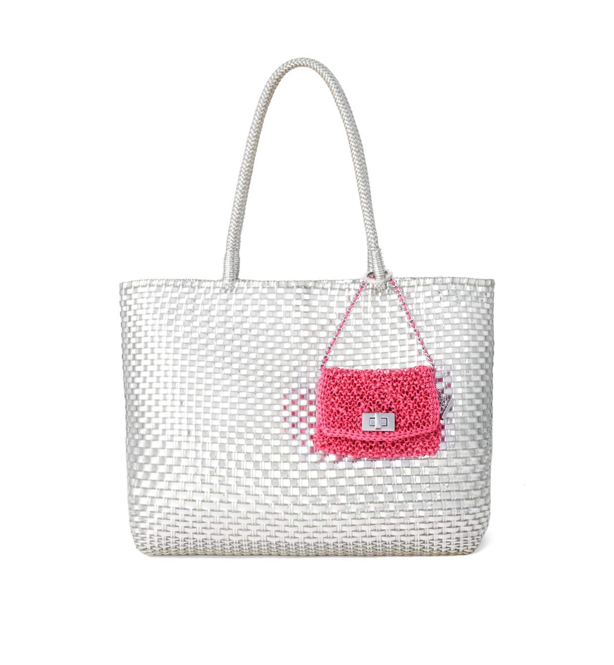 長さの違うチェーンが2本付いており、チェーンハンドルや斜めがけにアレンジ可能。