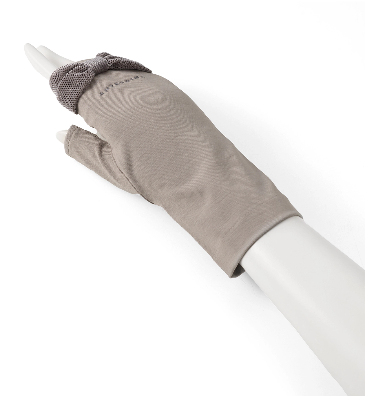 VELOUR MESH RIBBON UV CARE FINGERLESSSHORT GLOVES/GREIGE EAP6163810-Q89-000