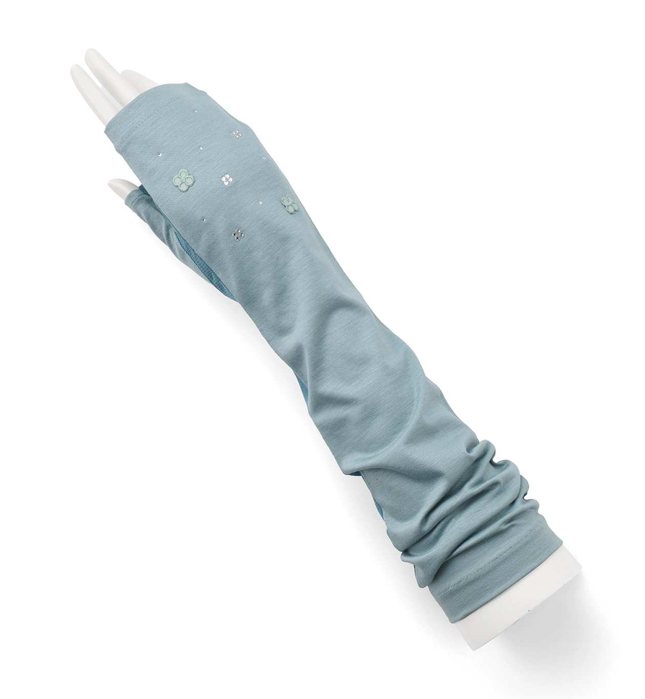 ラインストーンフィオーリモチーフ付きUVケアフィンガーレスロンググローブ/ブルー