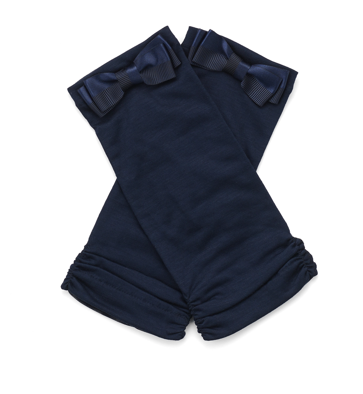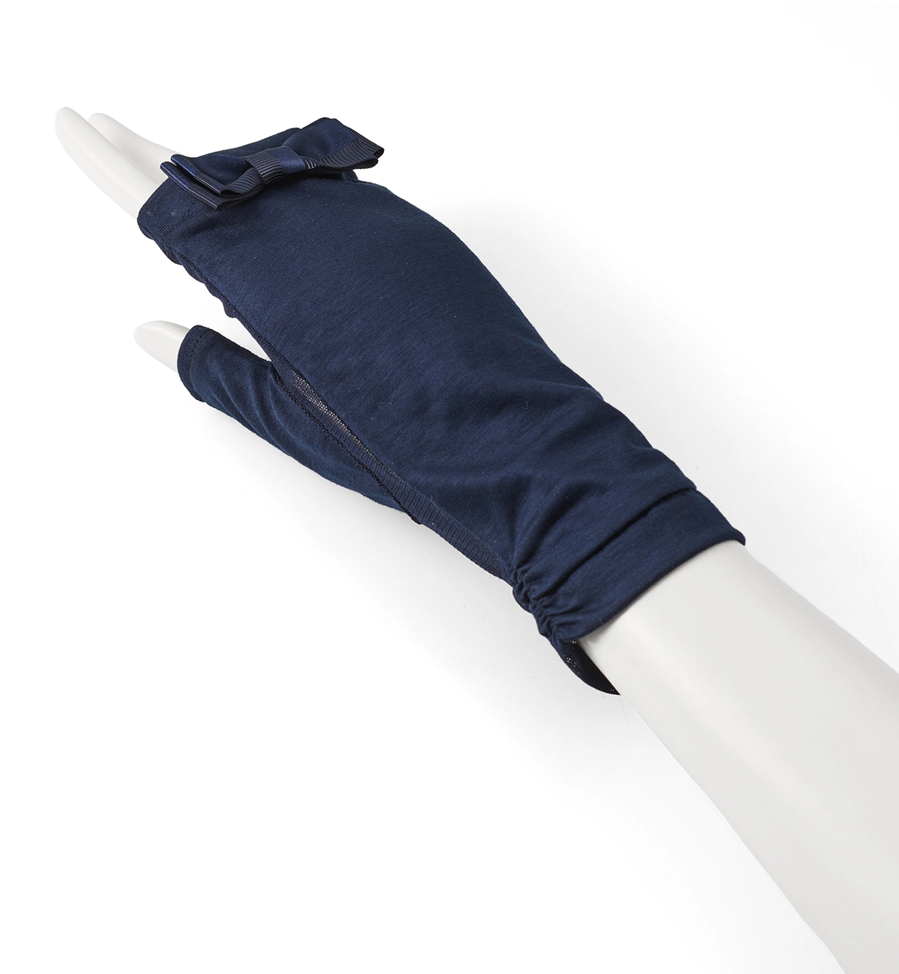 • サテングログランリボン付きメッシュUVケアフィンガーレスショートグローブ/ネイビー