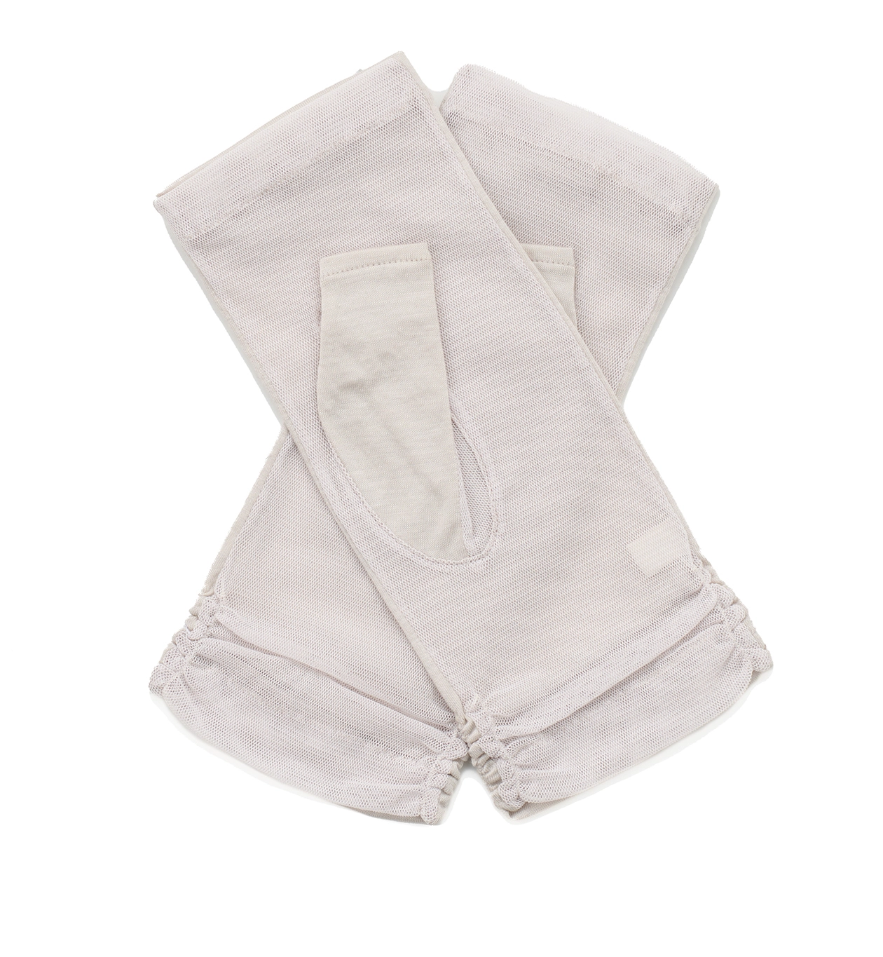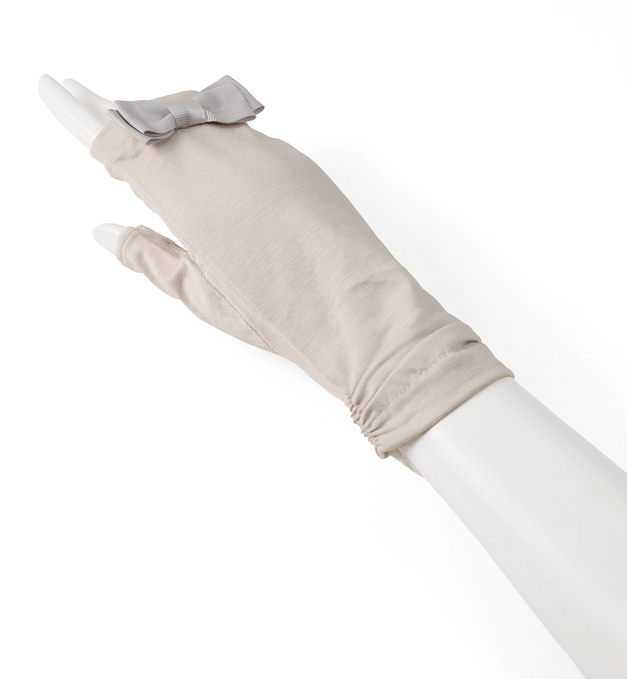 • サテングログランリボン付きメッシュUVケアフィンガーレスショートグローブ/グレー