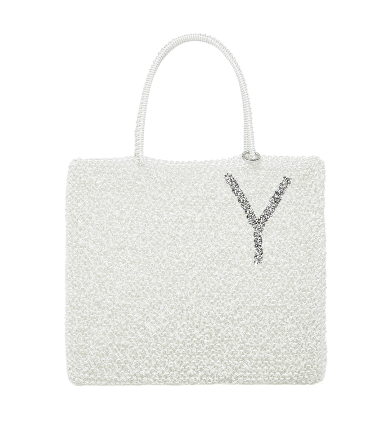スタンダードラインのスクエア型からカラーをお選びいただき、お好きなアルファベットや数字をキラキラと輝くガラス・ストーンで入れることができる特別なワイヤーバッグです。