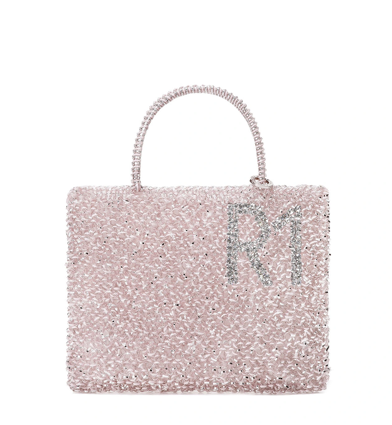 スタンダードラインのスクエア型からカラーをお選びいただき、お好きなアルファベットや数字をキラキラと輝くガラス・ストーンで入れることができる特別なワイヤーバッグです。